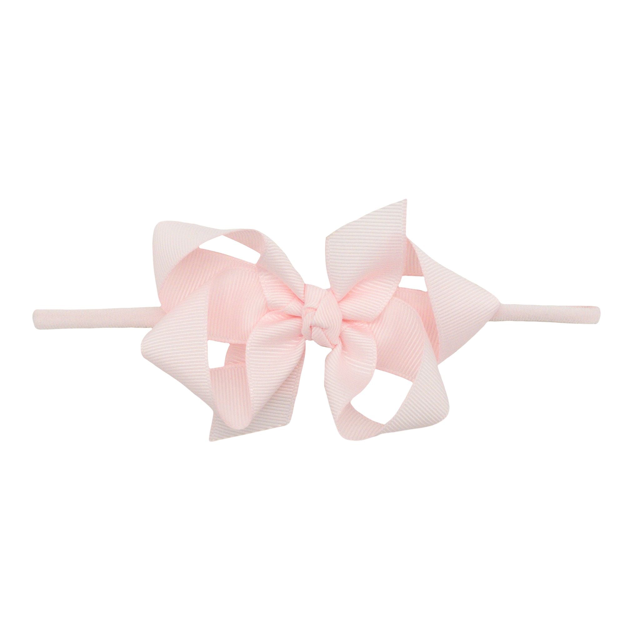 1/4" Nylon Headband with Grosgrain Hair Bow - Powder Pink
