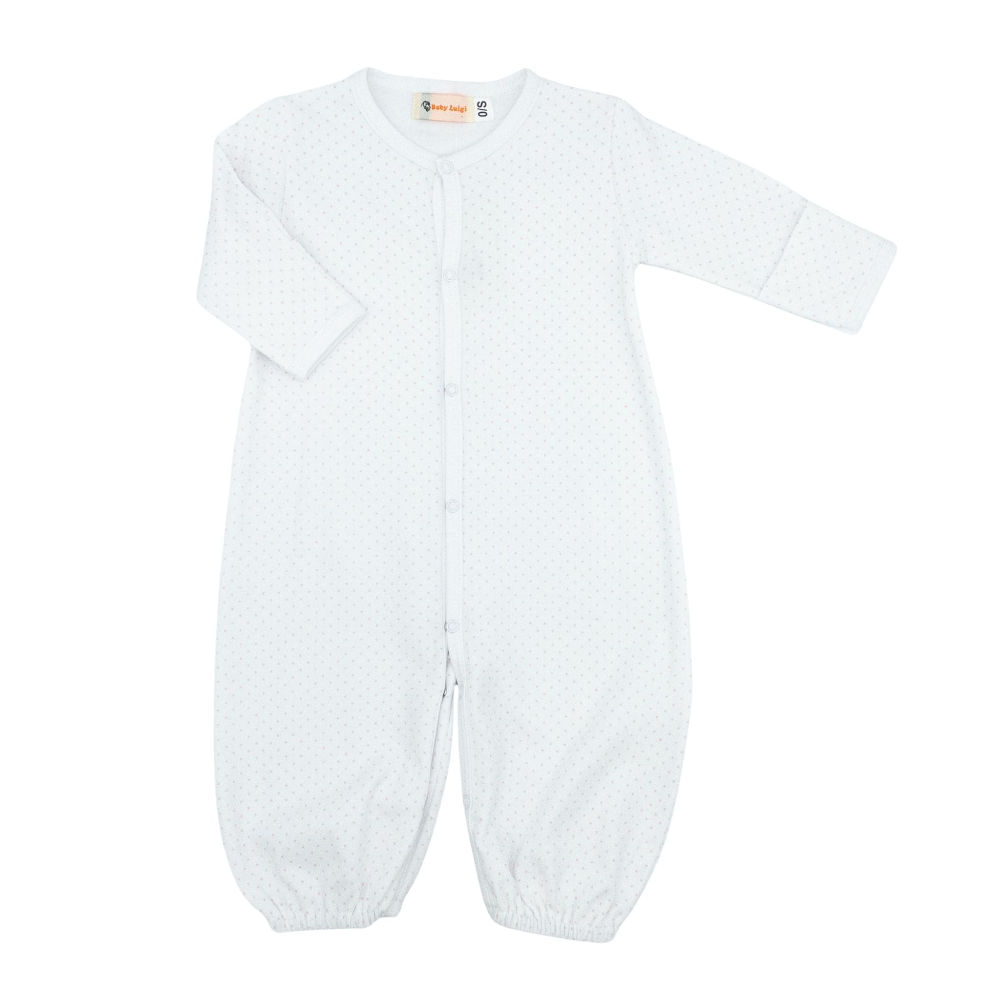 Crafted from luxuriously soft pima cotton, this converter sack combines comfort with practicality for everyday wear. The thoughtful design features easy-access snaps that make diaper changes quick and effortless, so you can dress your little one with minimal fuss. The classic white base with pink pindot pattern adds a charming touch to any outfit. Perfect for parents seeking a gentle, functional essential that keeps up with busy days.