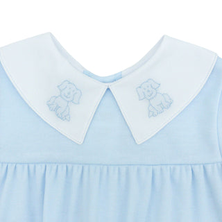 Boys Long-sleeve Daygown with Puppy Embroidery and Scallop Trim