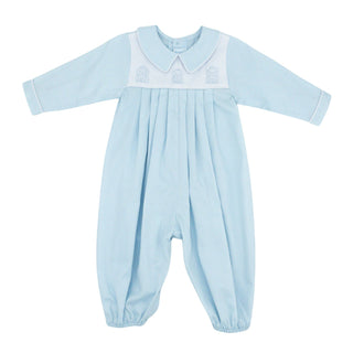 Boys Long-sleeve Daygown with Car Embroidery and Binding Trim