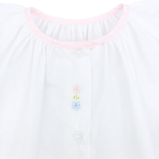 Girls Long-sleeve Daygown with Flower Bud Embroidery and Scallop Trim