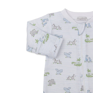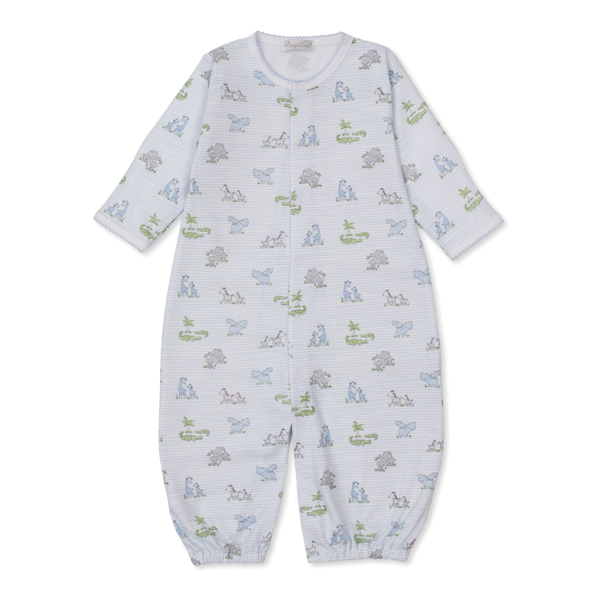 This Printed Converter Gown features a charming Safari Party print and is crafted from ultra-soft Pima cotton to keep your baby comfortable all day. Designed with convenient snaps, it easily transforms from a cozy gown to a playful playsuit, making it perfect for both naptime and active moments. A versatile and gentle choice for your little one’s wardrobe.