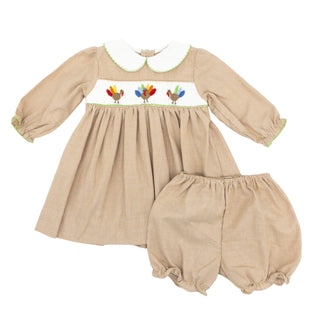 Long-sleeve Collared Dress with Hand-smocking - Turkeys