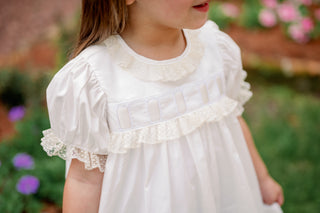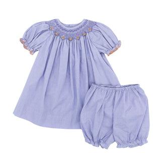 Collared Dress and Bloomers with Hand-smocked Bullion Bows