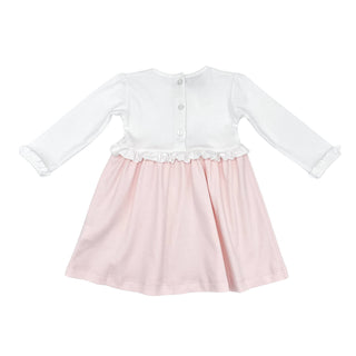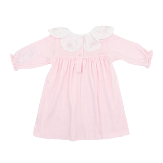 Knit Dress with Ruffle Collar and Hand-embroidery - Pink Ribbons