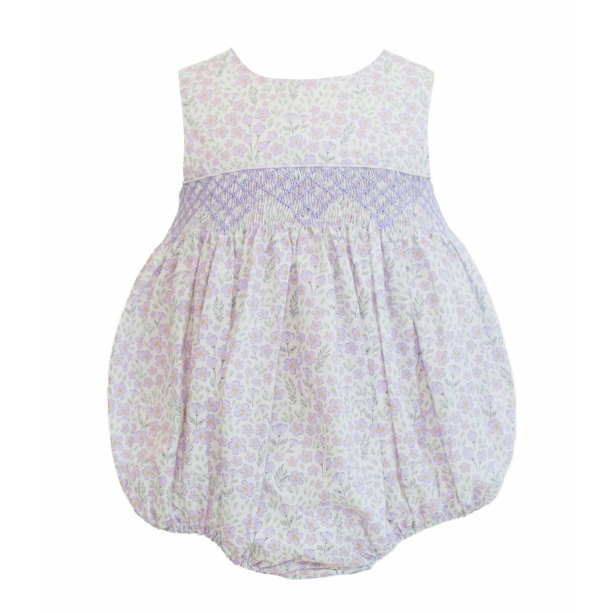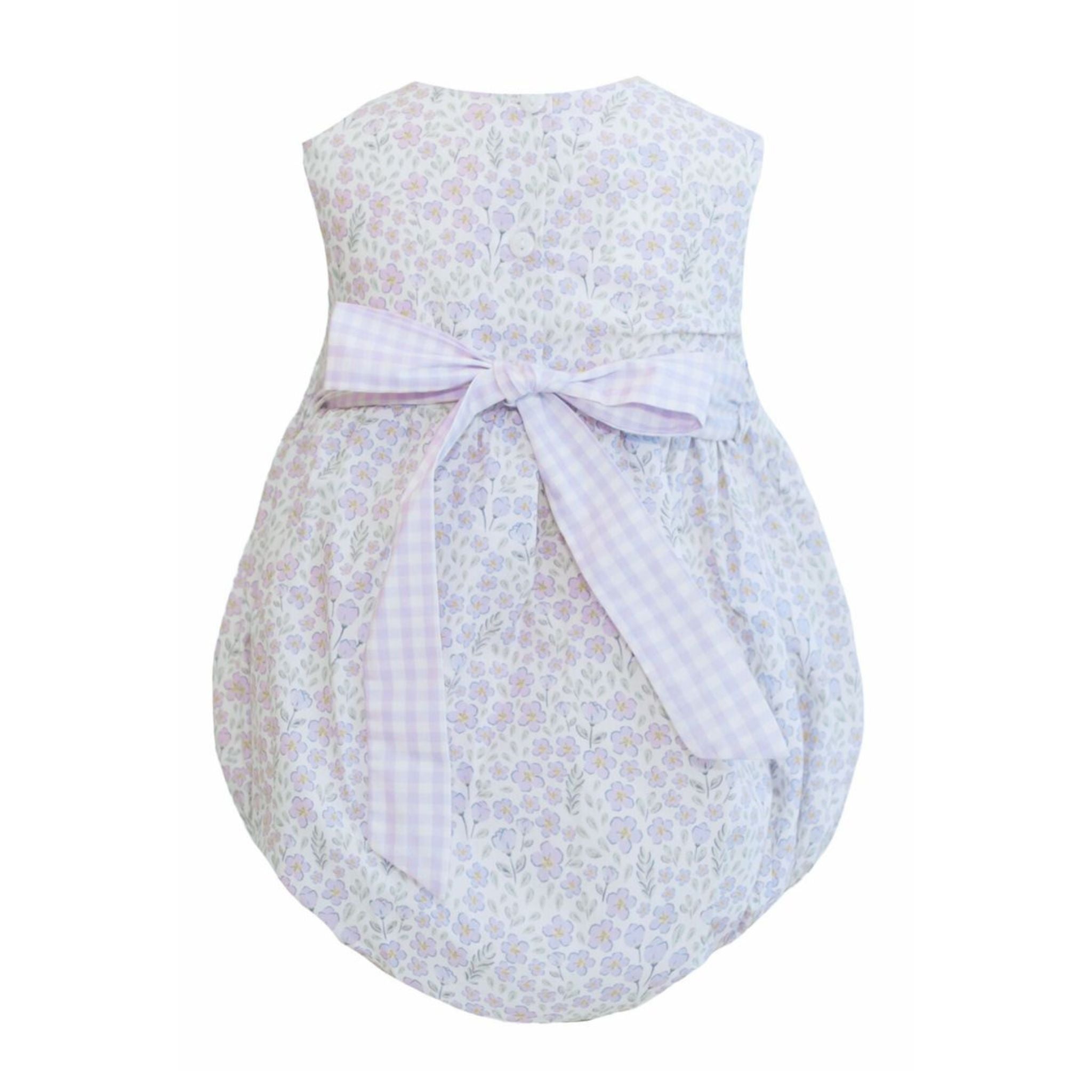 Introducing the Avery Smocked Bubble—spring's most delightful little number! This sweetly designed bubble showcases a lovely floral print that celebrates the season in style. Intricate smocking across the bodice adds dimension and charm, while a gingham bow ties at the back for an extra touch of whimsy. This bubble is ready for anything. Pure joy in fabric form!