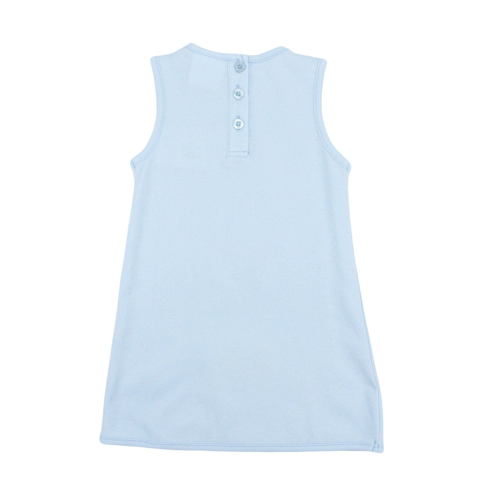This precious Blue Knit Aline Dress is the definition of sweet southern charm. Designed with soft pastel fabric, it features vertical blush trim and three beautifully embroidered bow appliques down the front for a timeless, girly look. The sleeveless silhouette keeps it comfortable and easy to wear, while the A-line shape makes it perfect for twirling through spring and summer days!