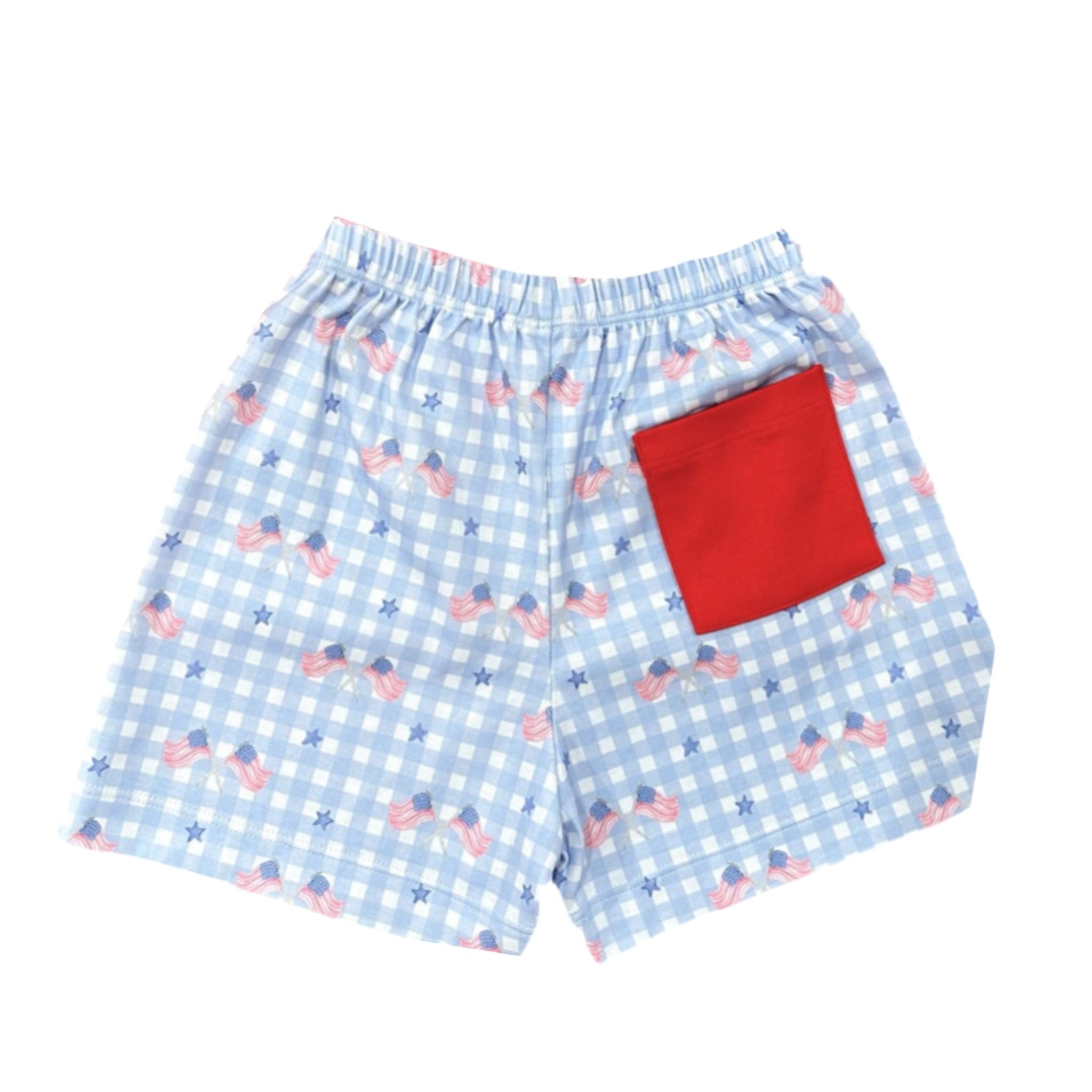 *PRE-ORDER* Conrad Pima Knit Shorts - Patriotic Gingham