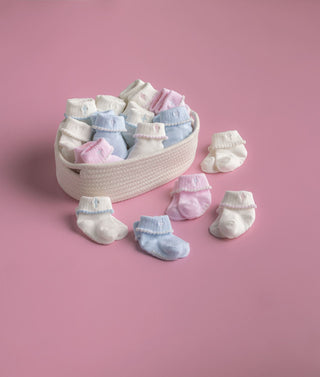 Rock-A-Bye Turn Cuff Socks 6 Pair Pack - Blue and White