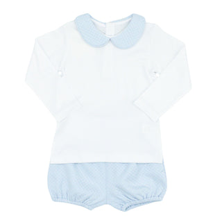 This premium knit pima cotton blouse and jacquard shorts set offers everyday comfort with a touch of luxury. Perfect for monogramming, this "traditional meets modern" style will elevate any wardrobe.