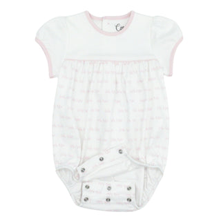 Made with luxurious Pima cotton, our Cary's Closet "Little Sister" gown in white with pink is perfect for your new arrival! The custom printed fabric adds a unique touch, while the delicate pink picot trim completes the look. Add a monogram to make this gown extra special!