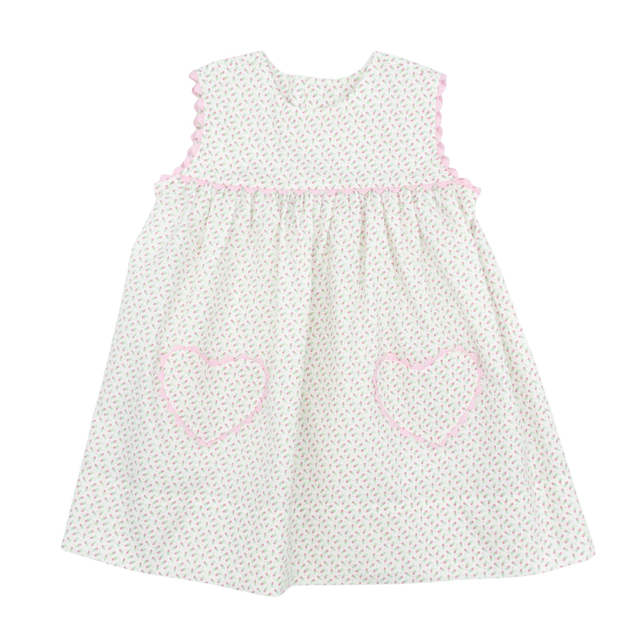 Twirl into spring and summer in this adorable Kyle Dress featuring a cheerful Sweet on Summer floral print. Pink scallop trim and heart-shaped pockets add the sweetest touch to this dress! Perfect for garden parties, picnics, or any sunny day adventure, this dress combines pretty florals with playful details that'll make her smile every time she wears it.