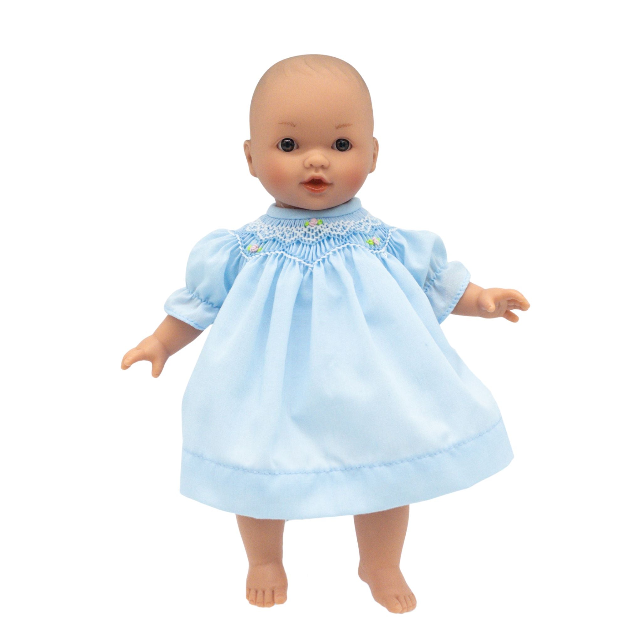 Fulfill your little one's passion for dolls with the Aubrey Doll. This classic baby doll has a happy and sweet facial expression. She is dressed in a beautiful, hand-smocked bishop dress. The soft body design makes her perfect for cuddling and imaginative play.