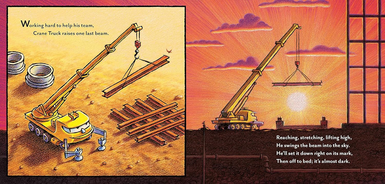 PERFECT READ-ALOUD: Author Sherri Duskey Rinker's sweet rhyming text and illustrator Tom Lichtenheld's irresistible artwork soothe little ones into a peaceful rest. This durable board book version is perfect for kids who love to read truck and construction stories, day or night!