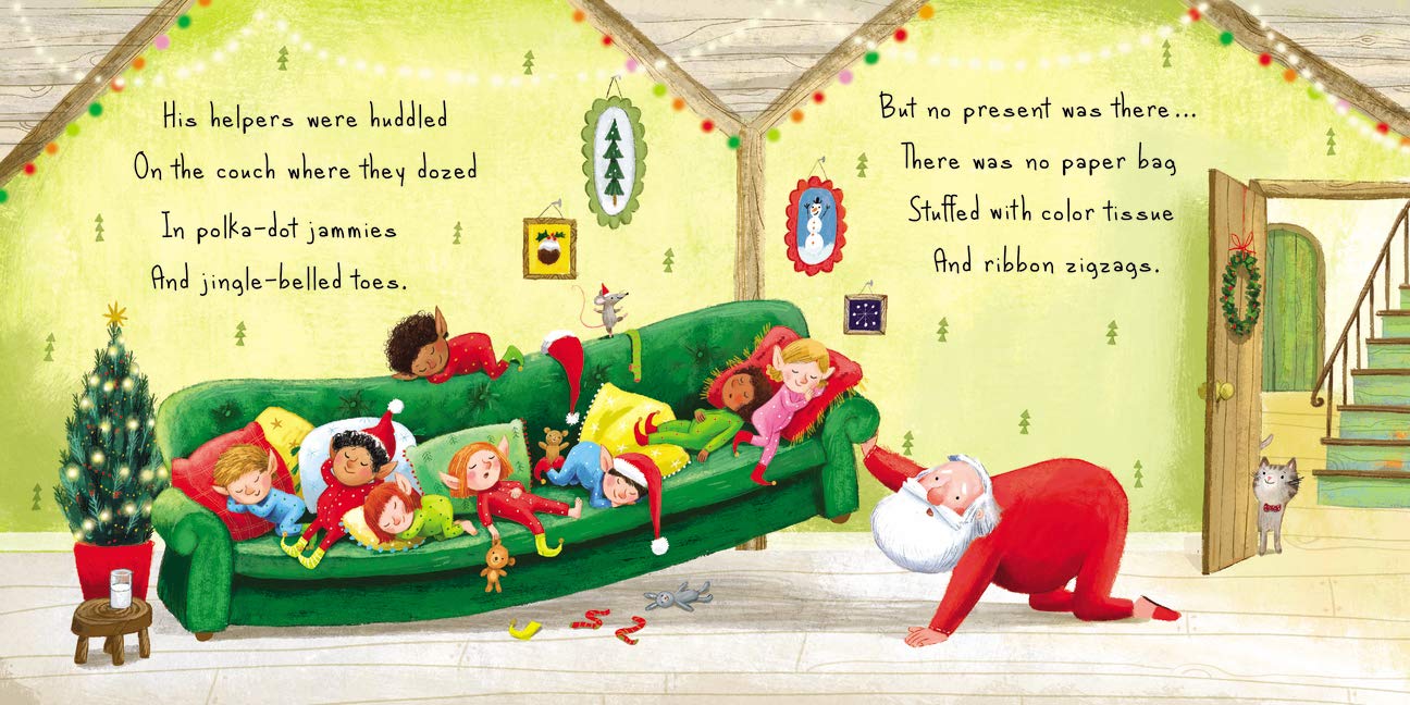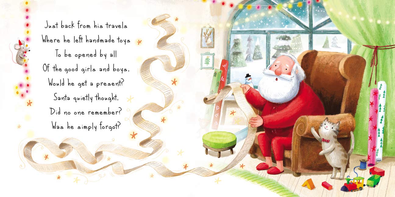 Follow Santa as he searches his cozy North Pole home until he finds homemade gifts waiting for him next to a beautiful handwritten note.