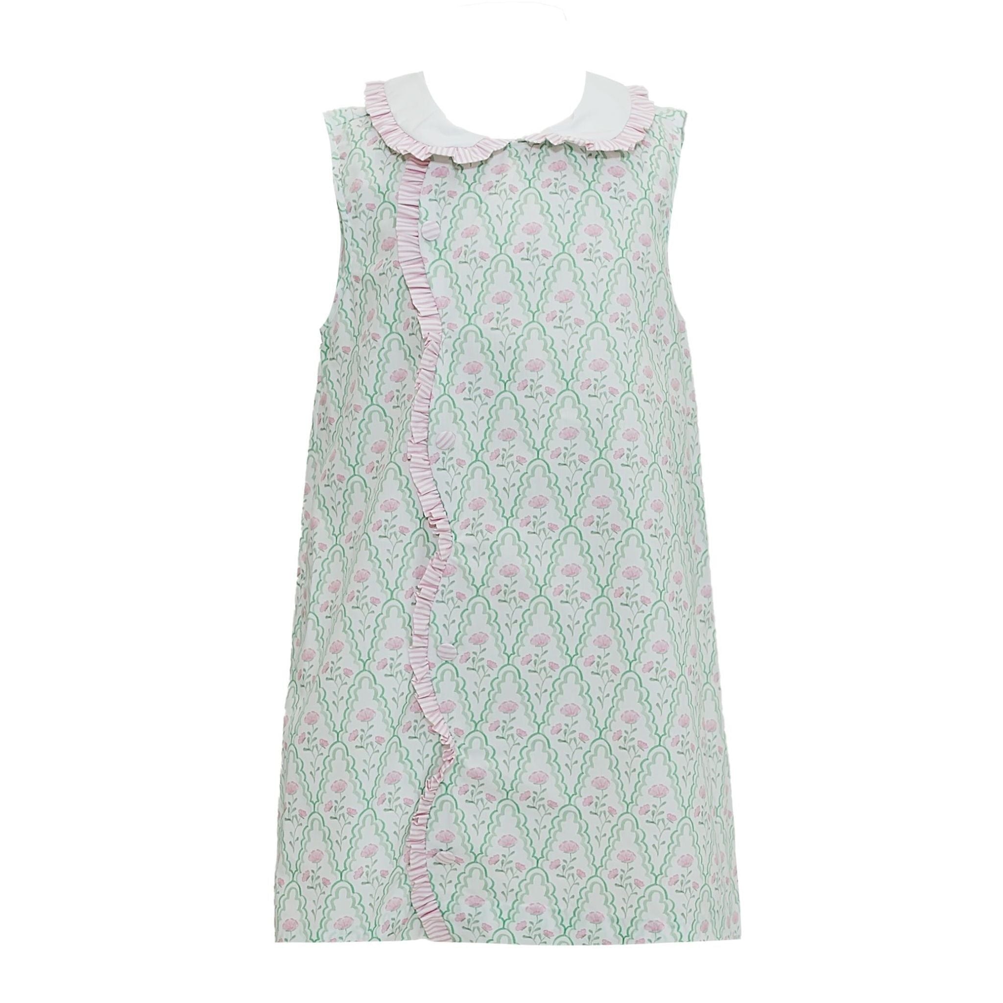 This charming Claire Scallop Dress brings effortless elegance to any spring wardrobe! Adorned with a beautiful floral print, it features a light pink scalloped ruffle cascading down the front and a sweetly trimmed collar. The perfect blend of playful and polished, this dress strikes that ideal balance between fun and sophisticated—ideal for everything from casual outings to special occasions. A delightful choice for the season ahead!
