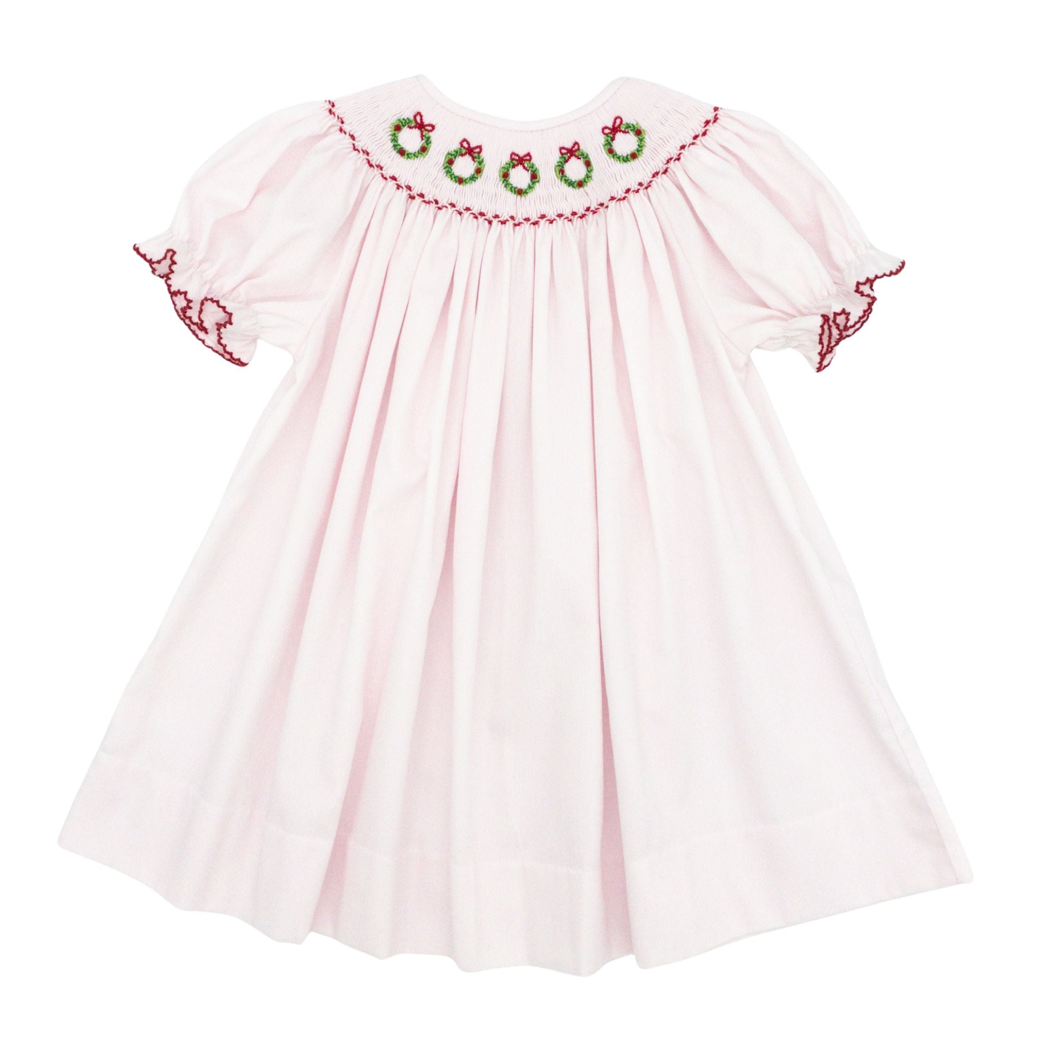 Bishop Dress with Hand-smocking - Christmas Wreaths