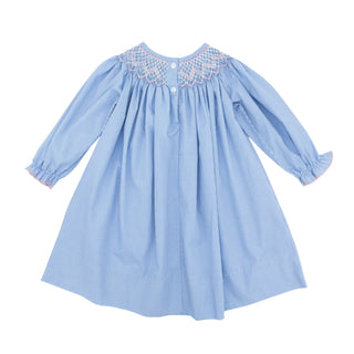 Girls Long-sleeve Bishop Dress with Hand-smocking - Blue Gingham