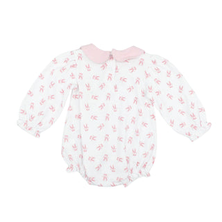 Girls Printed Knit Bubble with Peter Pan Collar - Bows & Ribbons