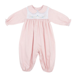 Pima Collared Footie with All-over Hand-embroidery - Sweet Roses