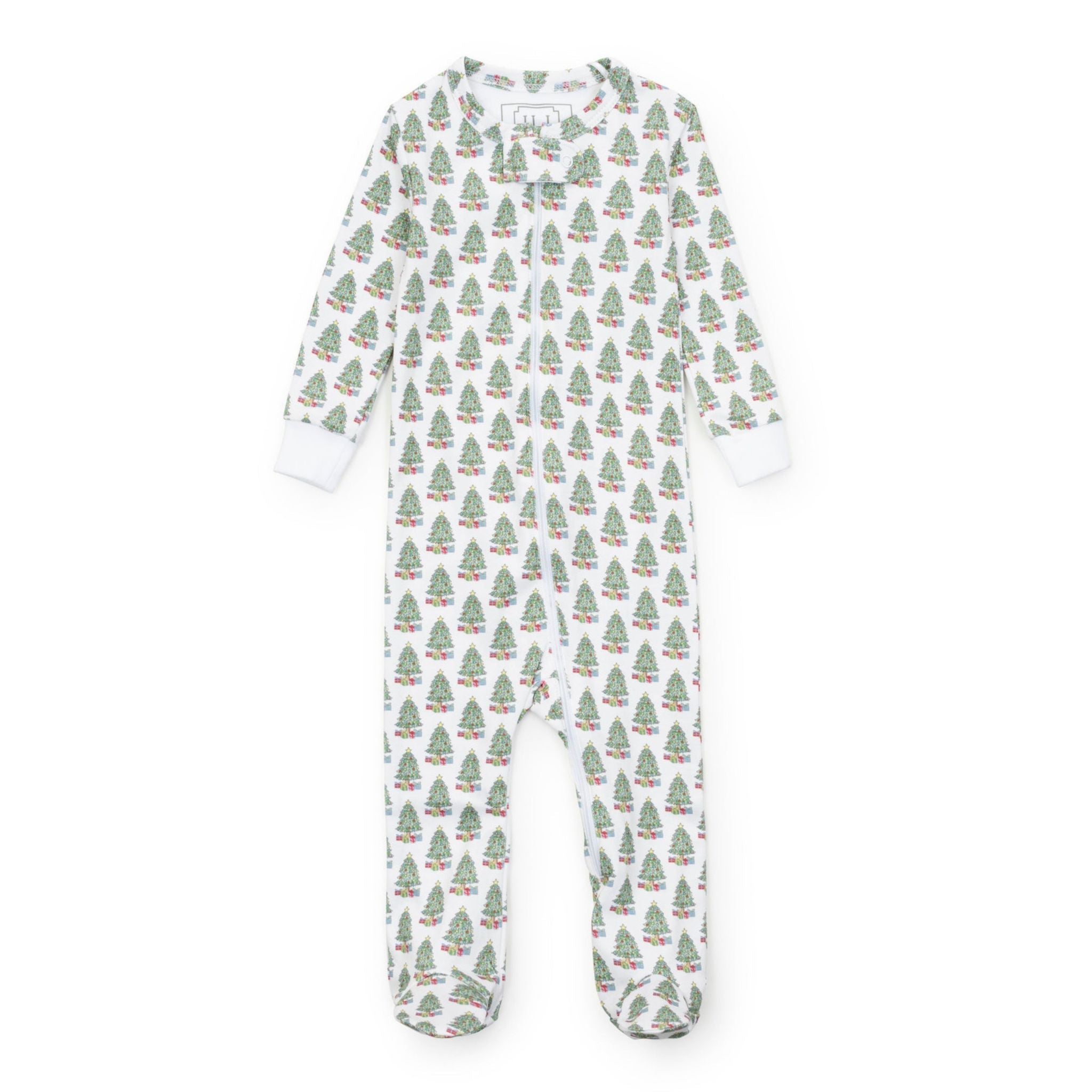 Cozy up your little one in our Parker Zipper Footie! Made with super-soft Peruvian Pima Cotton knit fabric, this footie will keep them snug all day long. The easy zipper closure makes dressing a breeze, and the festive Christmas tree print adds a touch of fun to the holiday season. Matching sibling options are also available!