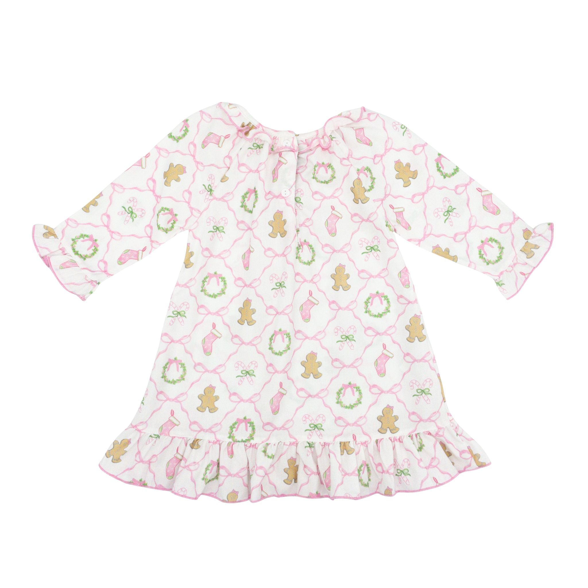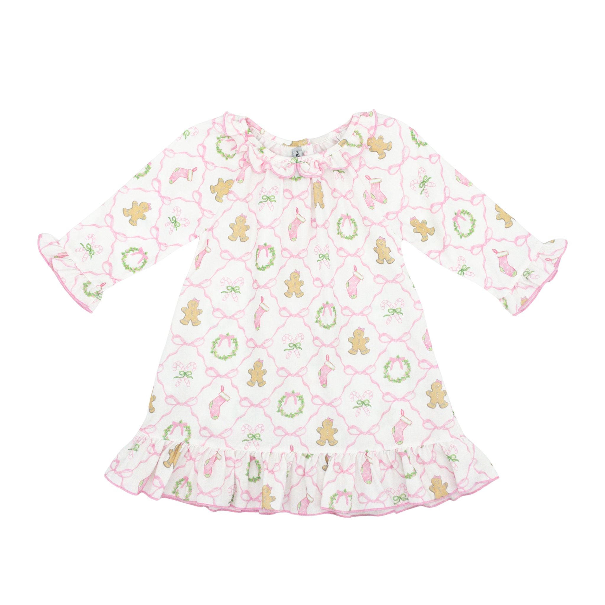 The Bow Trellis Embroidered Nightgown is perfect for lounging in holiday style. Covered in a sweet holiday print, it brings festive fun to her cozy moments. Finished with playful ruffle details at the collar and hem, this gown adds a charming touch to her seasonal relaxation!