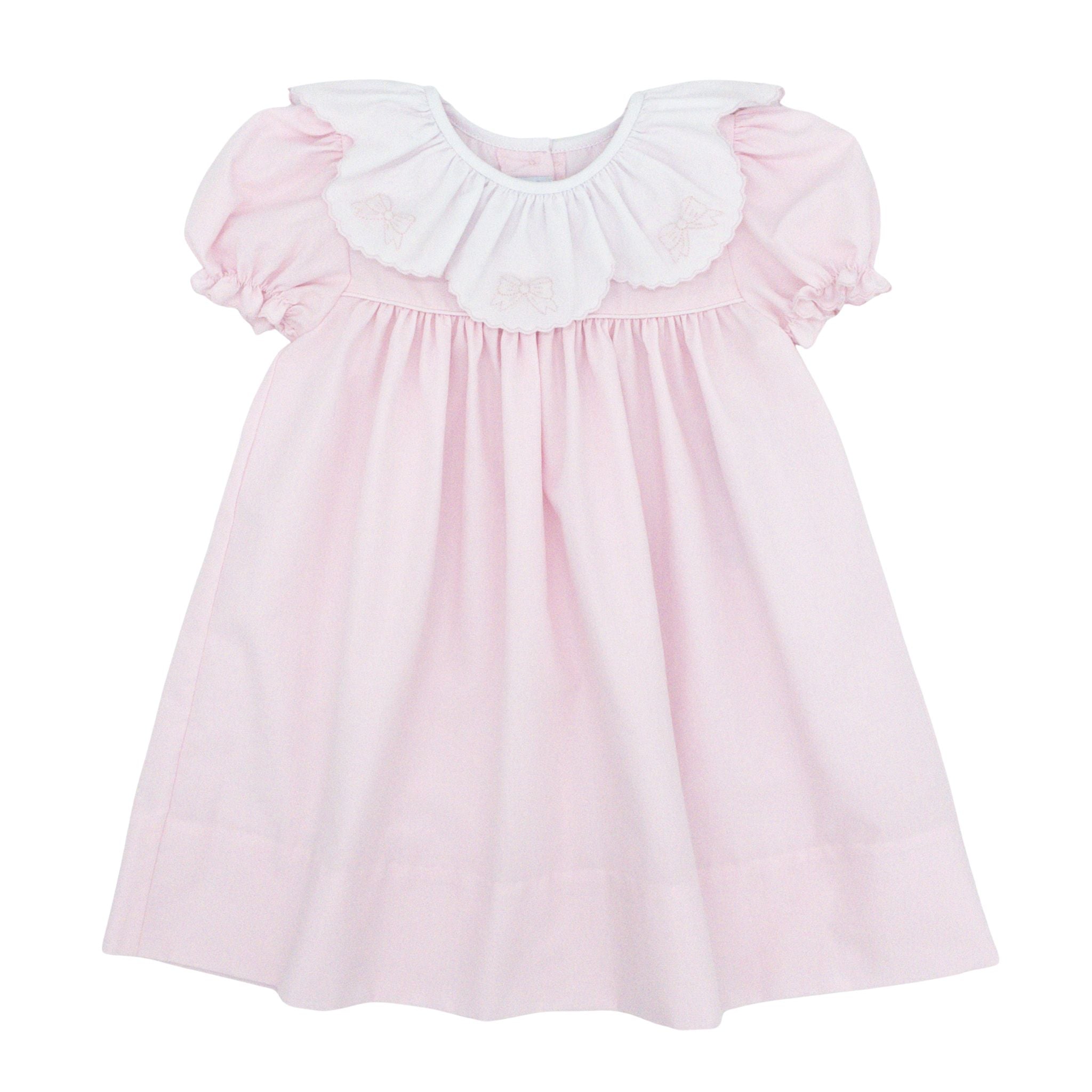 Dress with Ruffle Collar and Hand-embroidery - Pink Bows