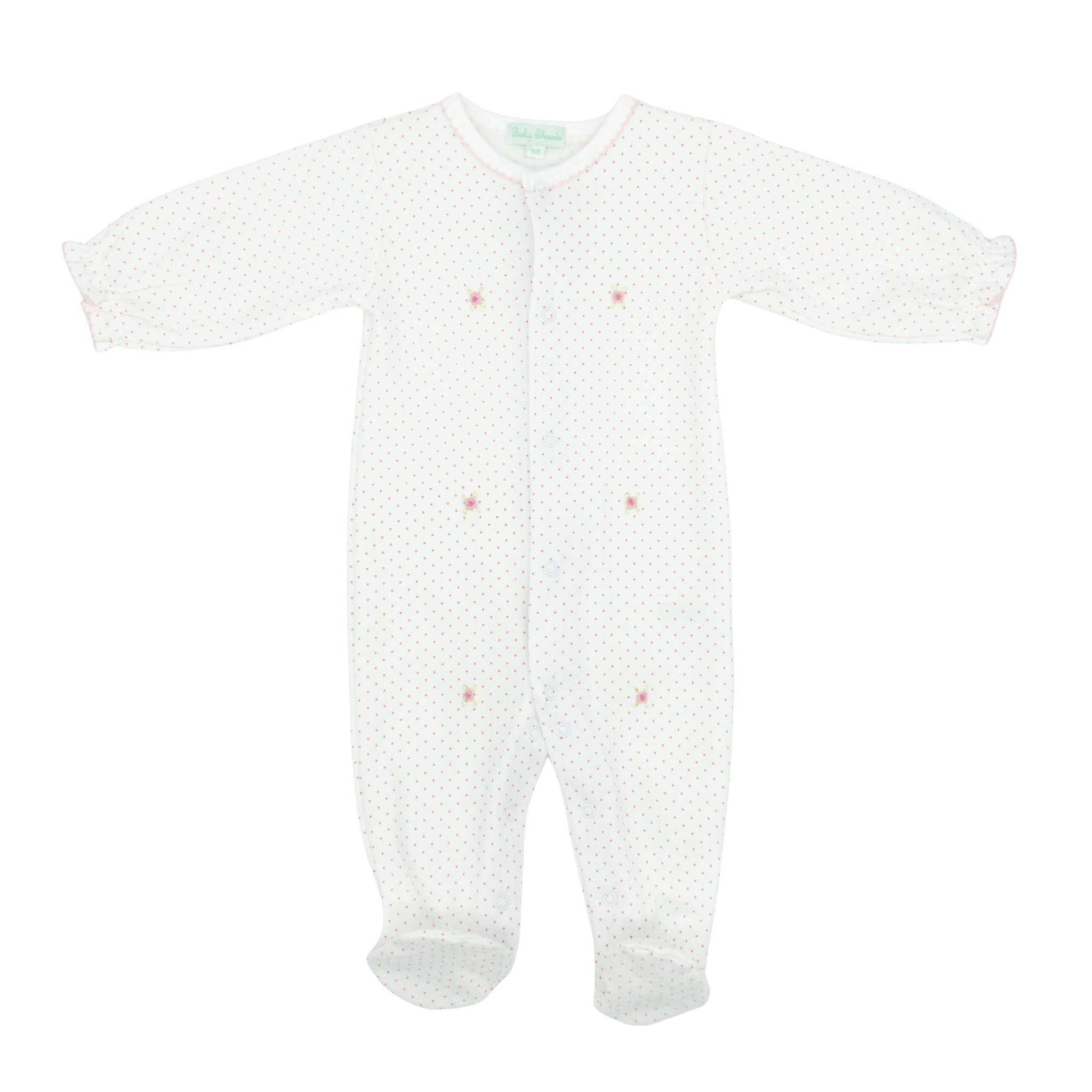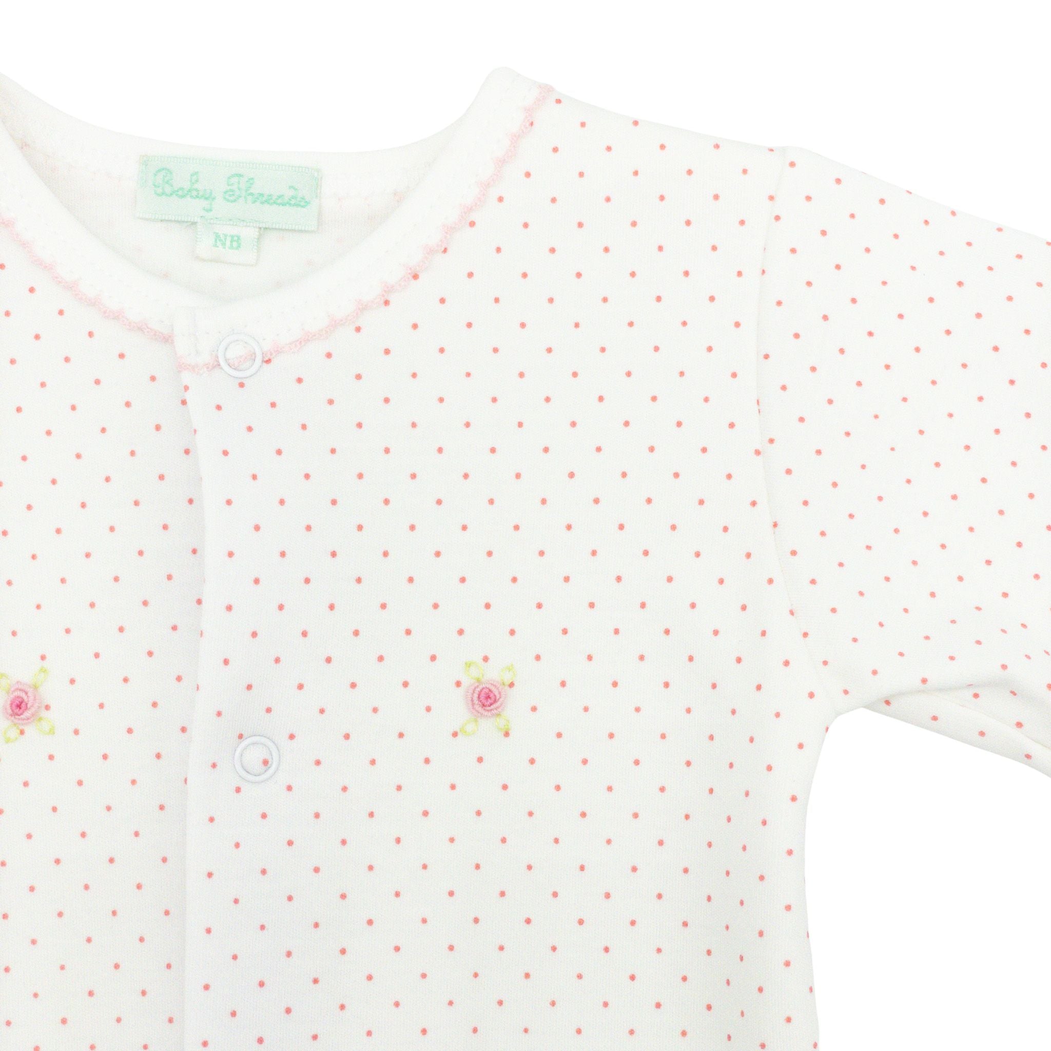 Pindot Footie with Hand-embroidery - Peggy Rosebuds