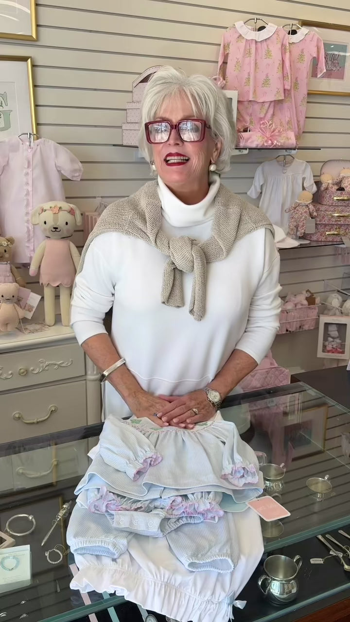 Introducing the Cary's Closet Pima Knit Lap Shoulder Gown with Picot Trim in White with Blue, crafted with premium Pima cotton for ultimate softness and comfort. Designed with delicate contrasting picot trim and a charming bow detail, this newborn gown is perfect for any little one. Pair it with our matching blanket and hat from Cary's Closet!