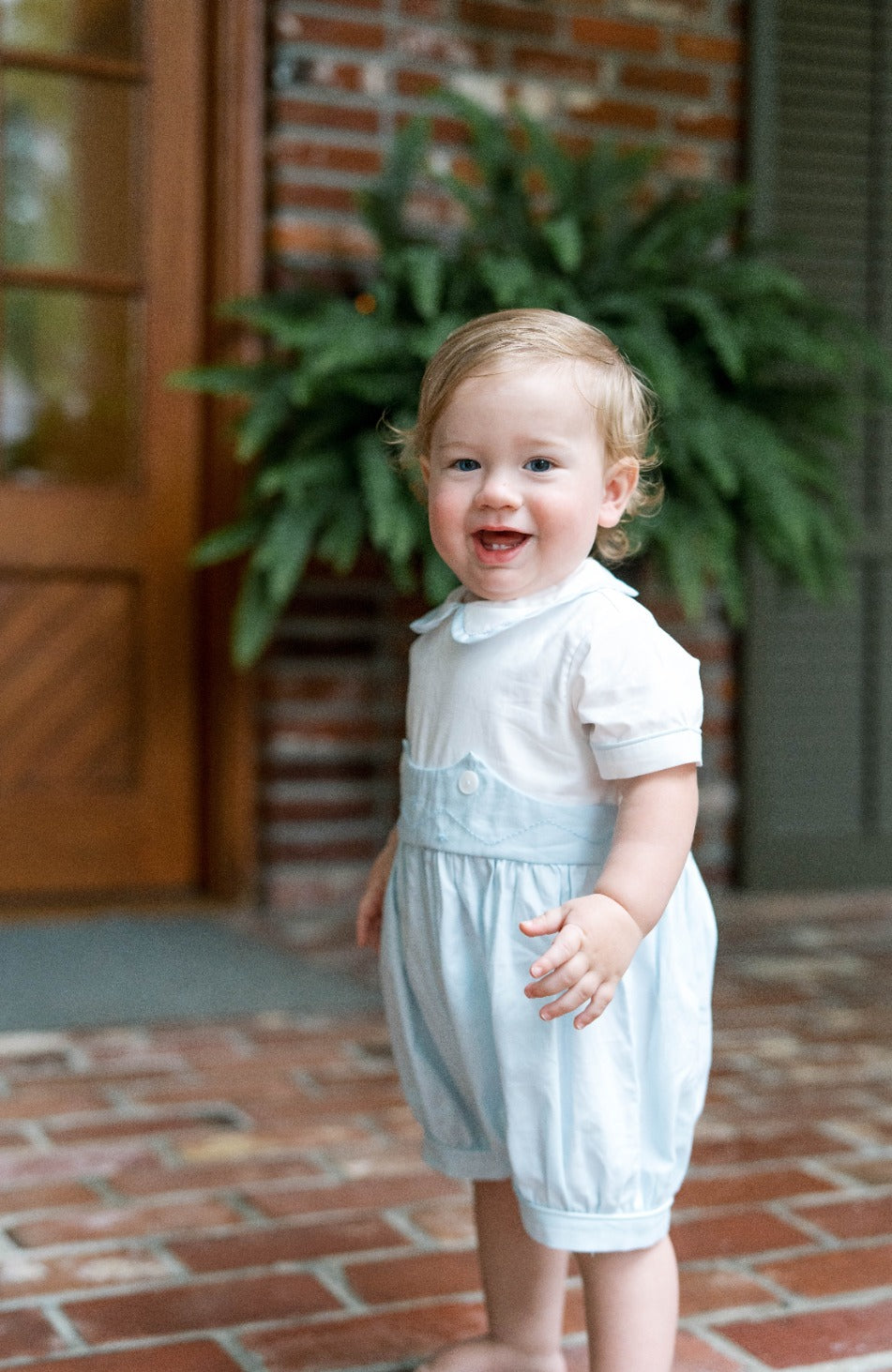 Say hello to the Sundays Best Bubble in Blue Batiste—a delightful outfit that's ready for anything! Crafted from soft antique white and blue batiste, this bubble style features precious embroidered details scattered across the waist with charming button flourishes. The blue-trimmed collar and sleeves add a refined touch. Perfect for church mornings, family pictures, or celebrating life's special moments, this outfit brings elegance and all-day comfort to your little guy's wardrobe!