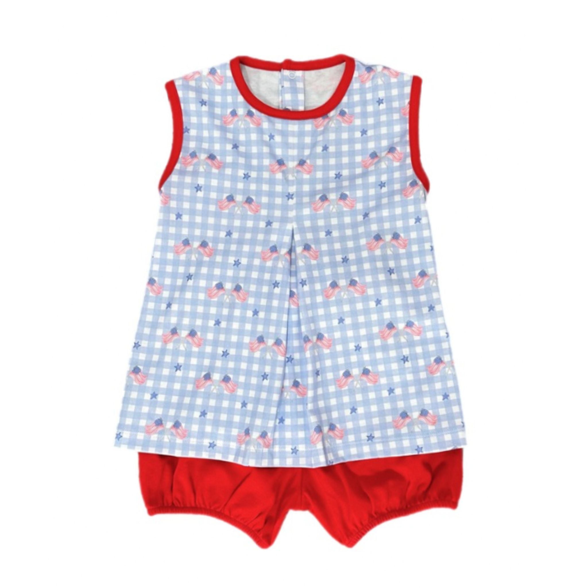 *PRE-ORDER* Sleeveless Rory Pima Knit Diaper Set - Patriotic Gingham
