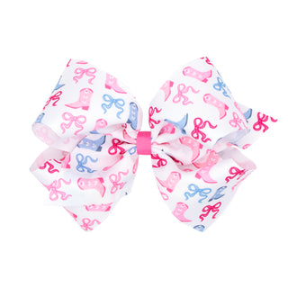 Embroidered Grosgrain Moonstitch Hair Bow - Pink Cowgirl Boot