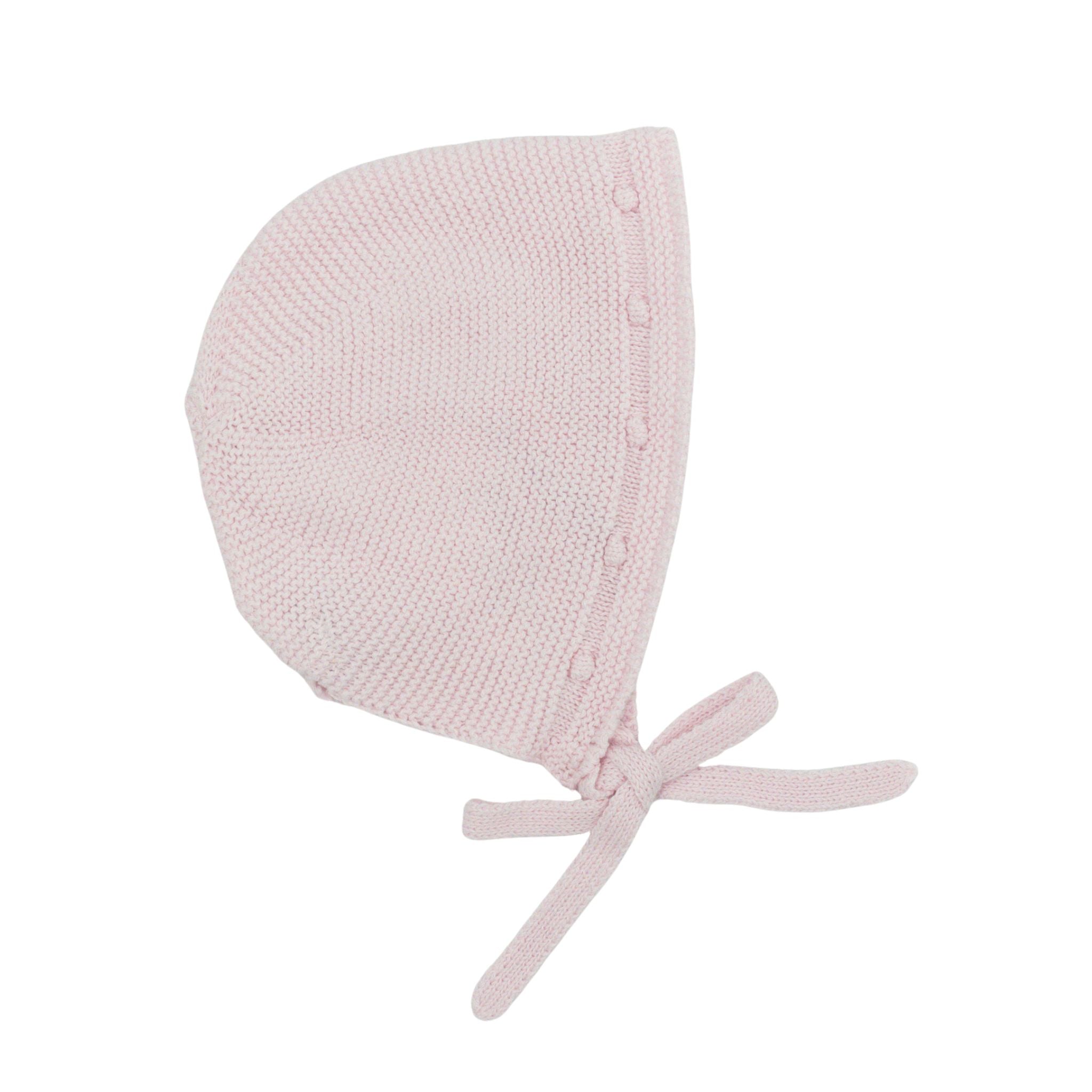 Complete your little one's look with this beautifully crafted pink bonnet from the beloved Spanish brand Mi Lucero. Soft and classic, this bonnet is knit with love from premium, breathable cotton yarn and adorned with delicate pom-pom "baubles" that add a charming touch. The traditional design and gentle chin ties ensure a snug, comfortable fit, making it a timeless accessory for special occasions and cherished family photos.