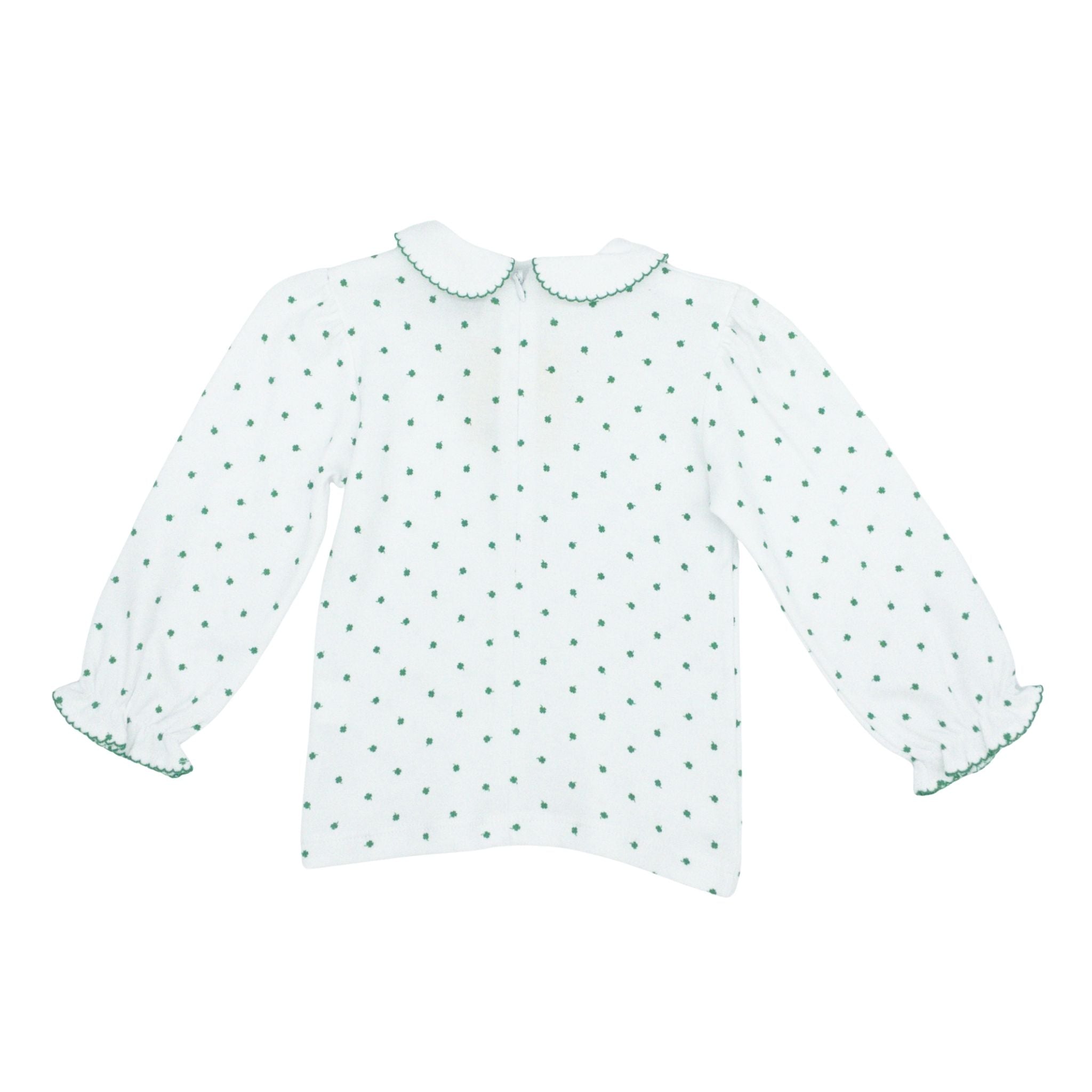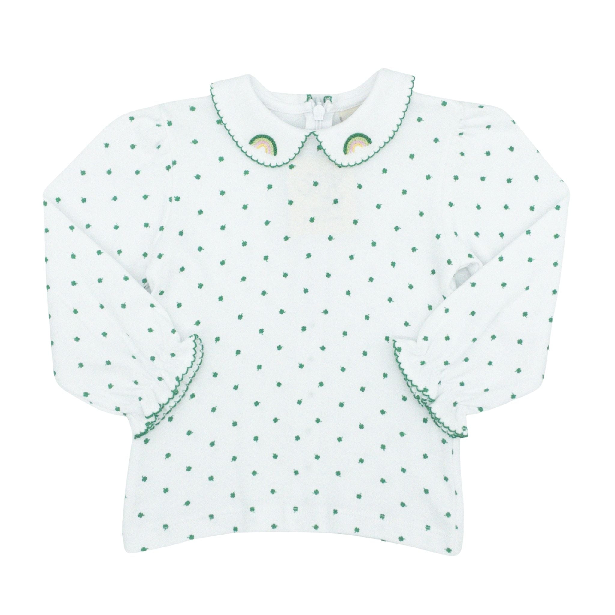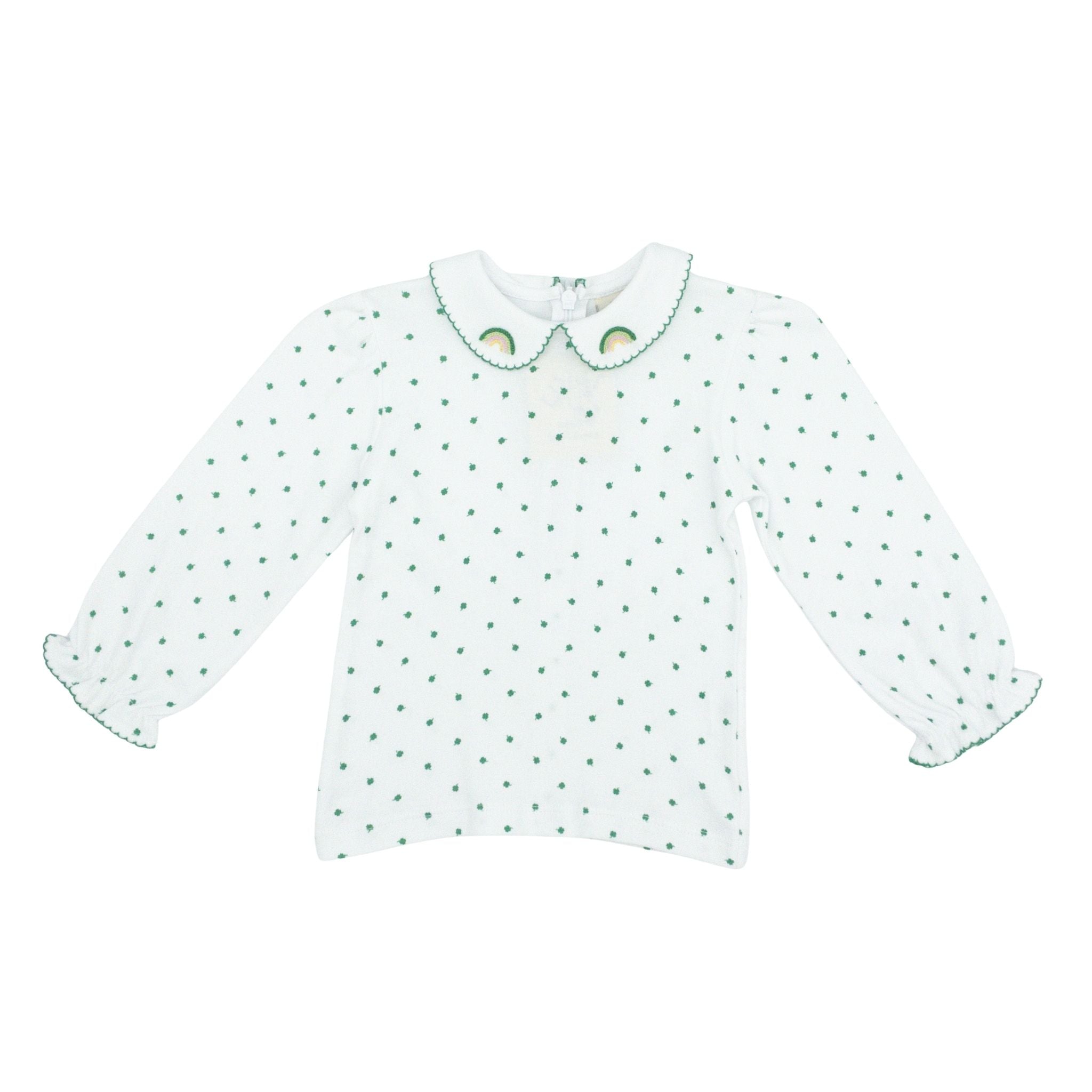 Girls Long-sleeve Collared Blouse with Hand-embroidery - Shamrock Print with Rainbow