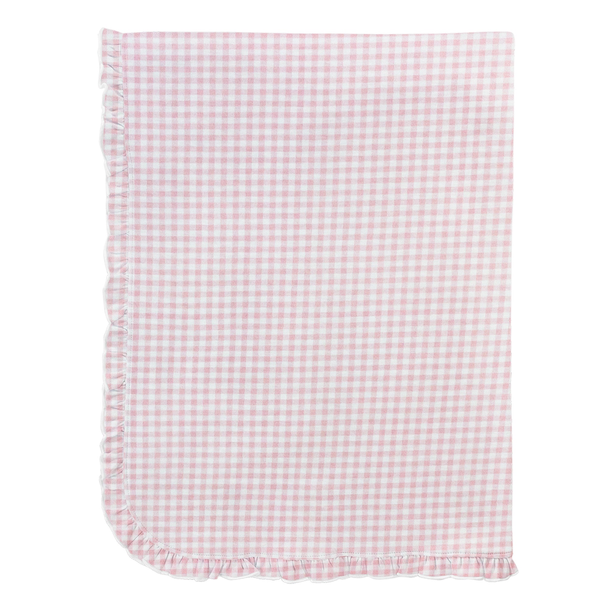 Printed Receiving Blanket with Ruffle - Pink Gingham