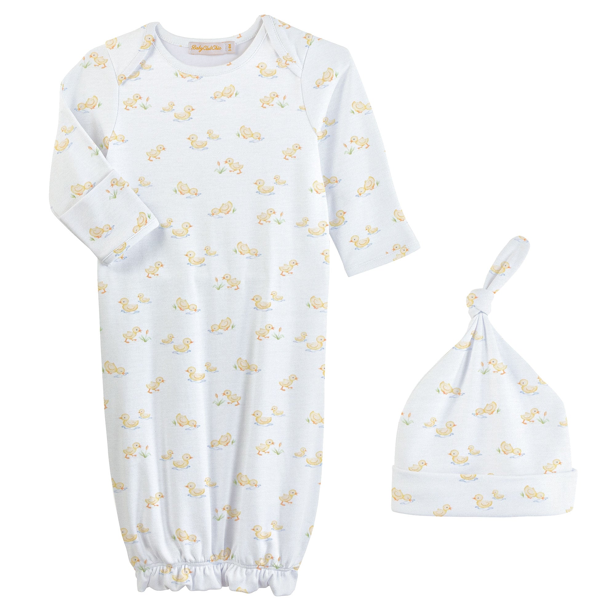 Printed Gown and Hat Set - Tiny Duckies