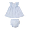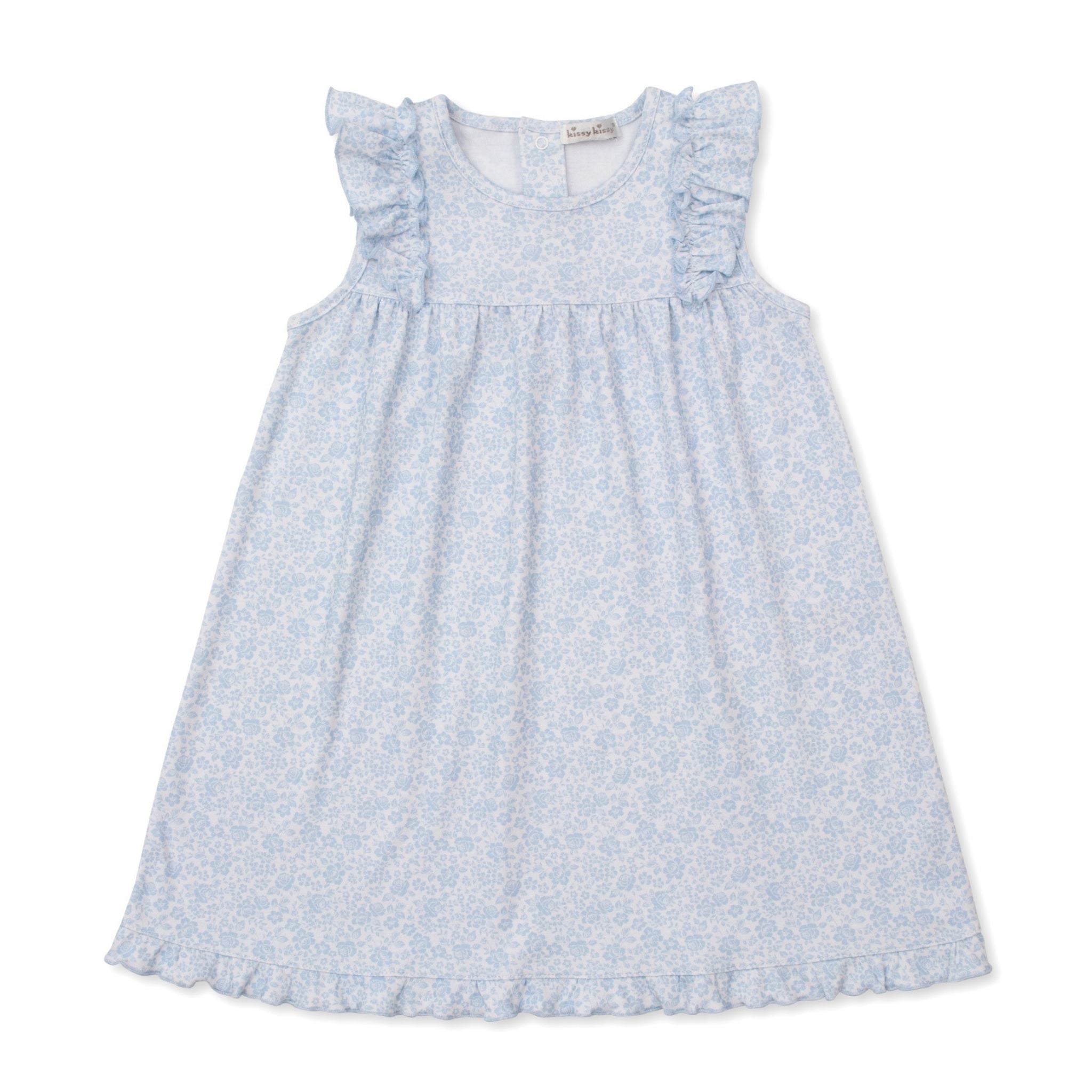 Meet your little one's new favorite dress! Wrapped in a whimsical Country Gardens print in gorgeous shades of blue, this dress is made from 100% Pima cotton that feels as good as it looks. The back snaps make getting dressed fun and fuss-free. Pure comfort meets adorable style!