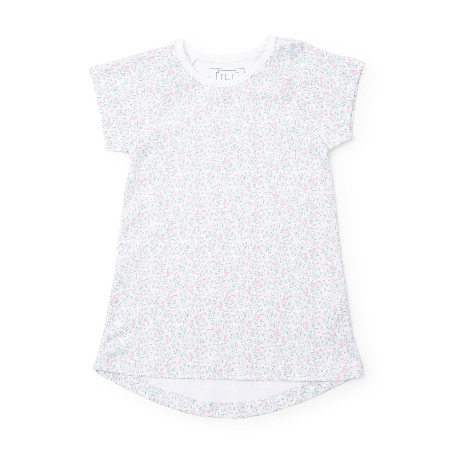Let your little one lounge in style with the Girls Sadie Pima Knit Morning Dress in Garden Soiree. This charming piece features a delightful pink, green, and blue floral design that's perfect for lazy mornings, pajama parties, or relaxed days at home. Crafted from 100% Pima cotton, it's incredibly soft and breathable, keeping her comfortable all day long. She'll love how cute and cozy she feels in this dress!