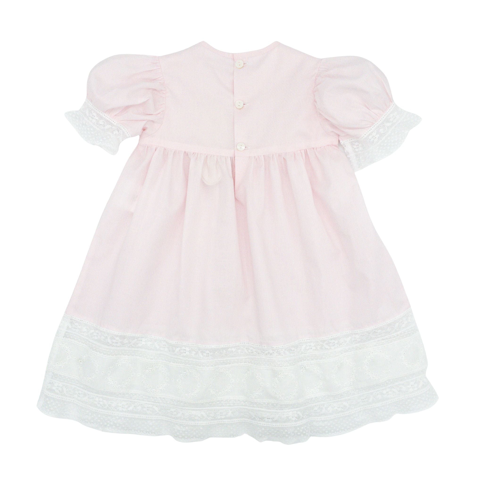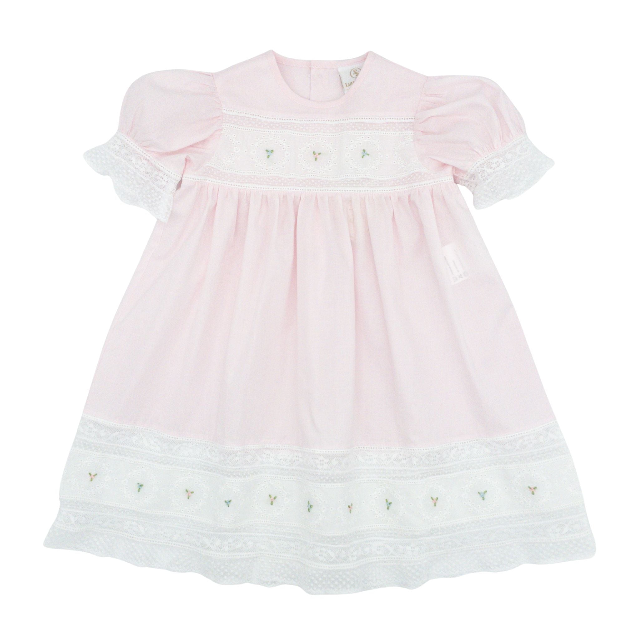 Step into elegance with the Hazel Heirloom Dress in Pink! This charming frock features intricate white lace embellishments paired with delicate floral embroidery throughout, creating a look that's simply irresistible. Whether she's hunting Easter eggs, posing for family portraits, or celebrating life's sweetest moments, this dress transforms any occasion into something memorable. A wardrobe treasure that deserves the spotlight!