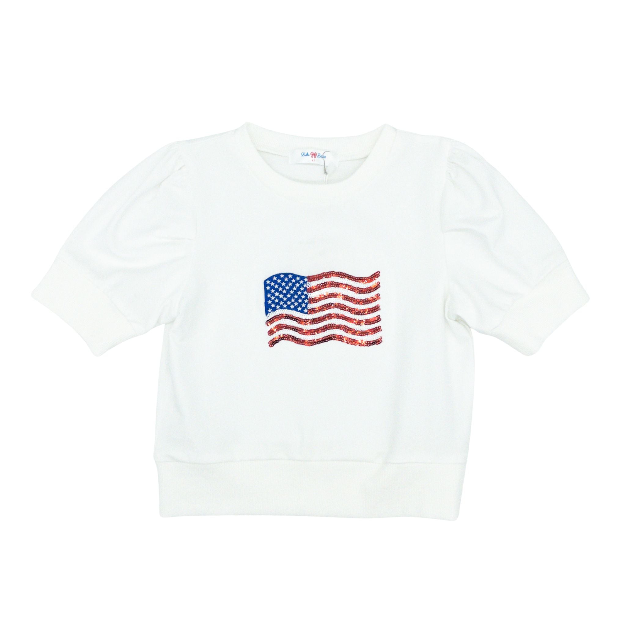 Girls Knit Shirt with Sequins - Flag