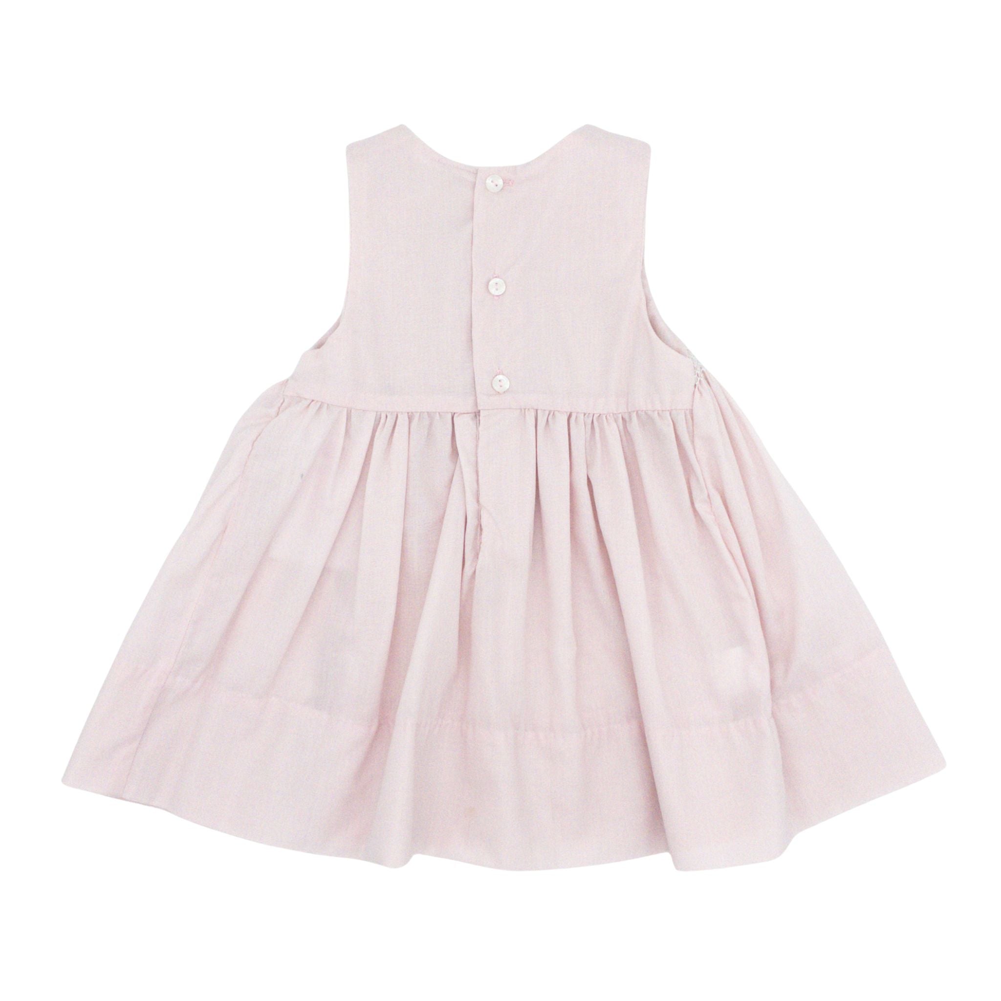 Bring timeless charm to her summer wardrobe with the Rosalina sundress in a soft, delightful pink. Crafted for special occasions and sunny days, this classic piece features exquisite English smocking across the bodice and delicate embroidered details that add a touch of playful elegance. With its comfortable, breathable fabric and traditional styling—including a secure button-back closure—this dress is designed to make every portrait, garden party, or family outing perfectly memorable!