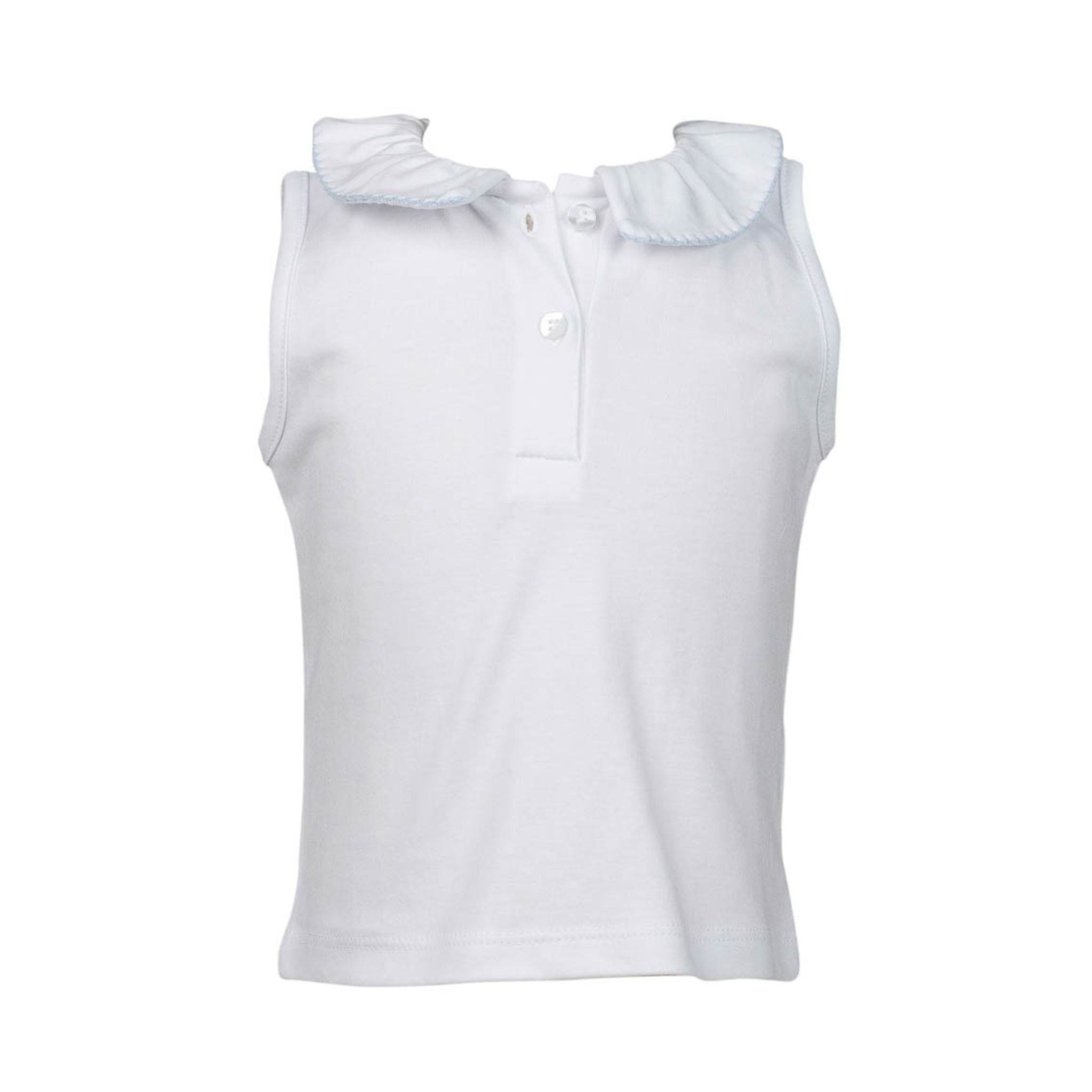Sleeveless Pima Knit Shirt with Picot Trim - White with Sky Blue