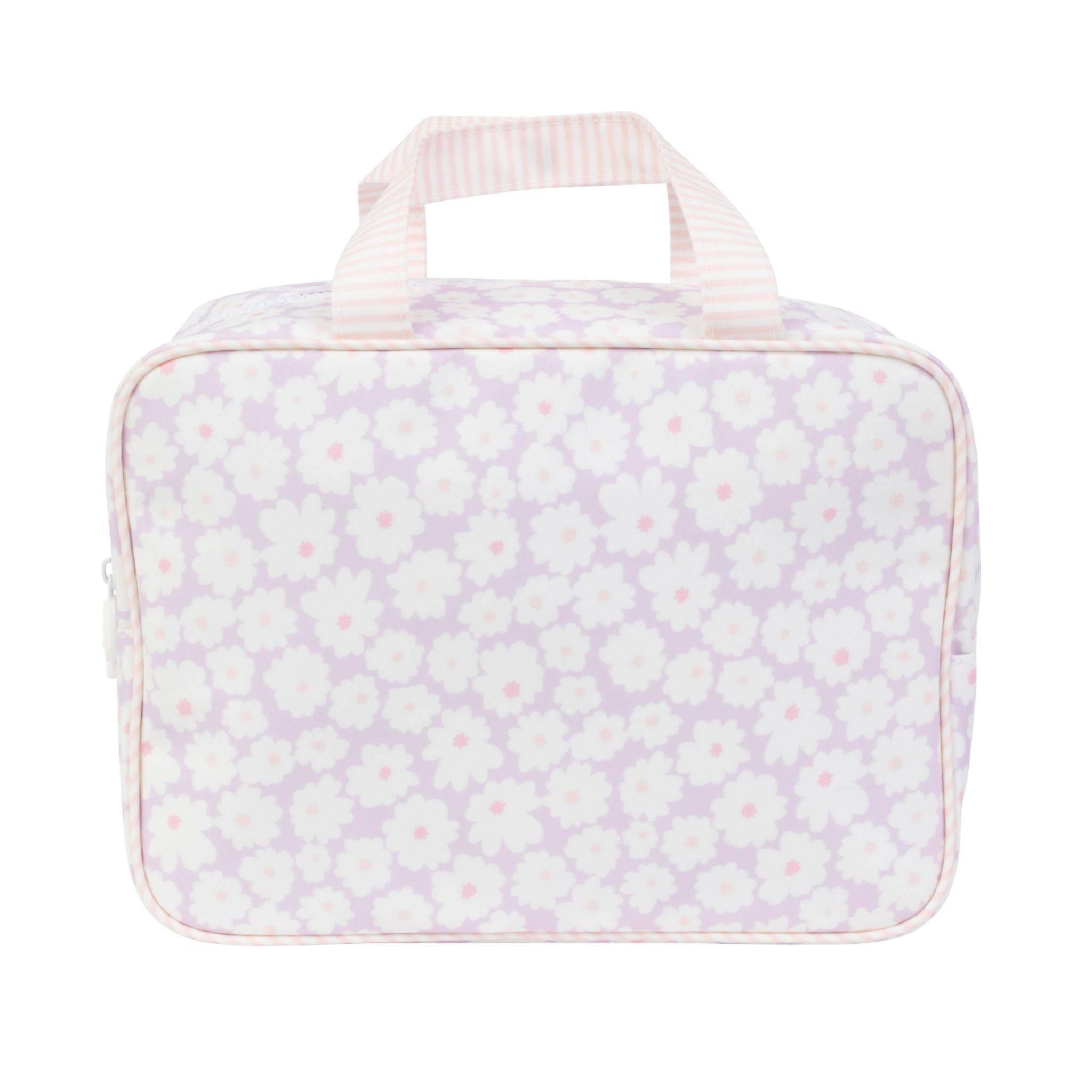 Clean, coated, and cute! Toys, snacks, hair tools, whatever you'd like - pack it up and take it with you in this Take It Tote in Lavender Daisies!