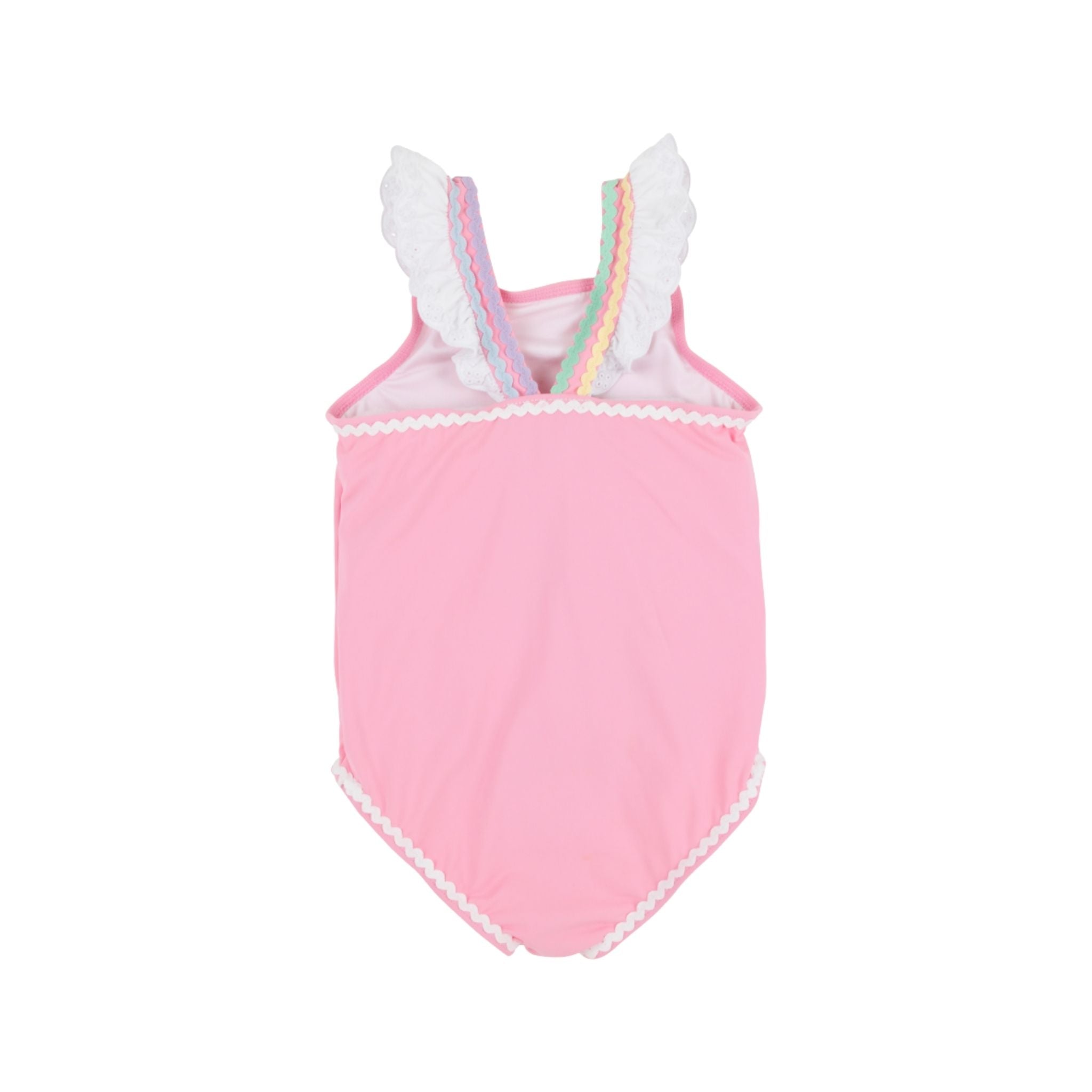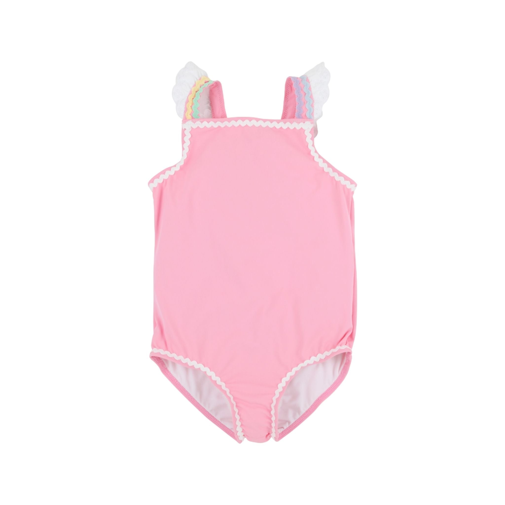 Our Long Bay Bathing Suit in vibrant Hamptons Hot Pink with Worth Avenue White & Multicolor Ric Rac brings coastal charm to her swimwear collection. This adorable girls' swimsuit features playful ric rac trim and quality construction that's perfect for pool days, beach vacations, and summer adventures. This piece is a swimwear favorite that makes every sunny day special.