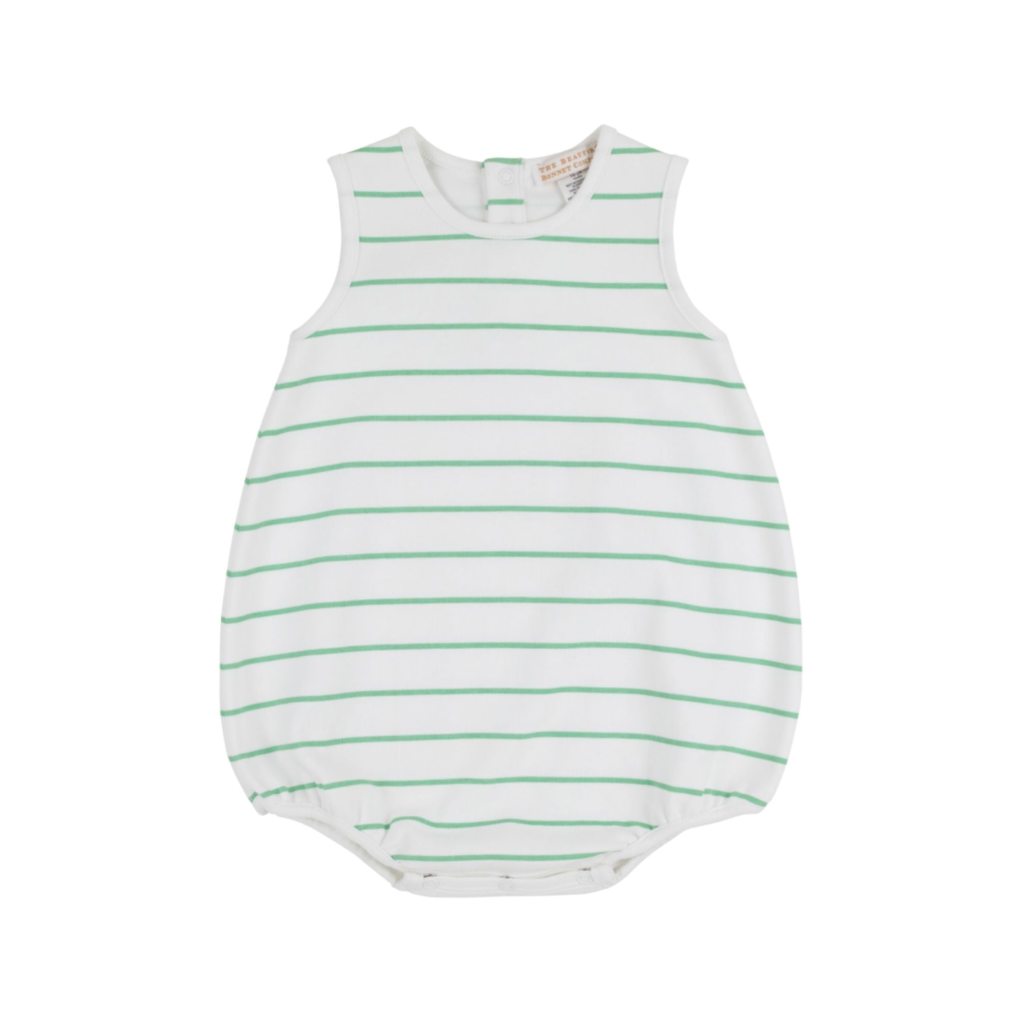 Let him play in preppy style with our Patton Play Bubble featuring sophisticated Gibson Island Green Stripe, designed with a sweet bubble silhouette perfect for your little one. Crafted from premium fabric with thoughtful details, convenient snap closures, and a comfortable fit, this adorable one-piece is ideal for playdates, special occasions, and creating cherished memories. A timeless wardrobe favorite that brings classic sophistication and effortless wearability to every adventure.