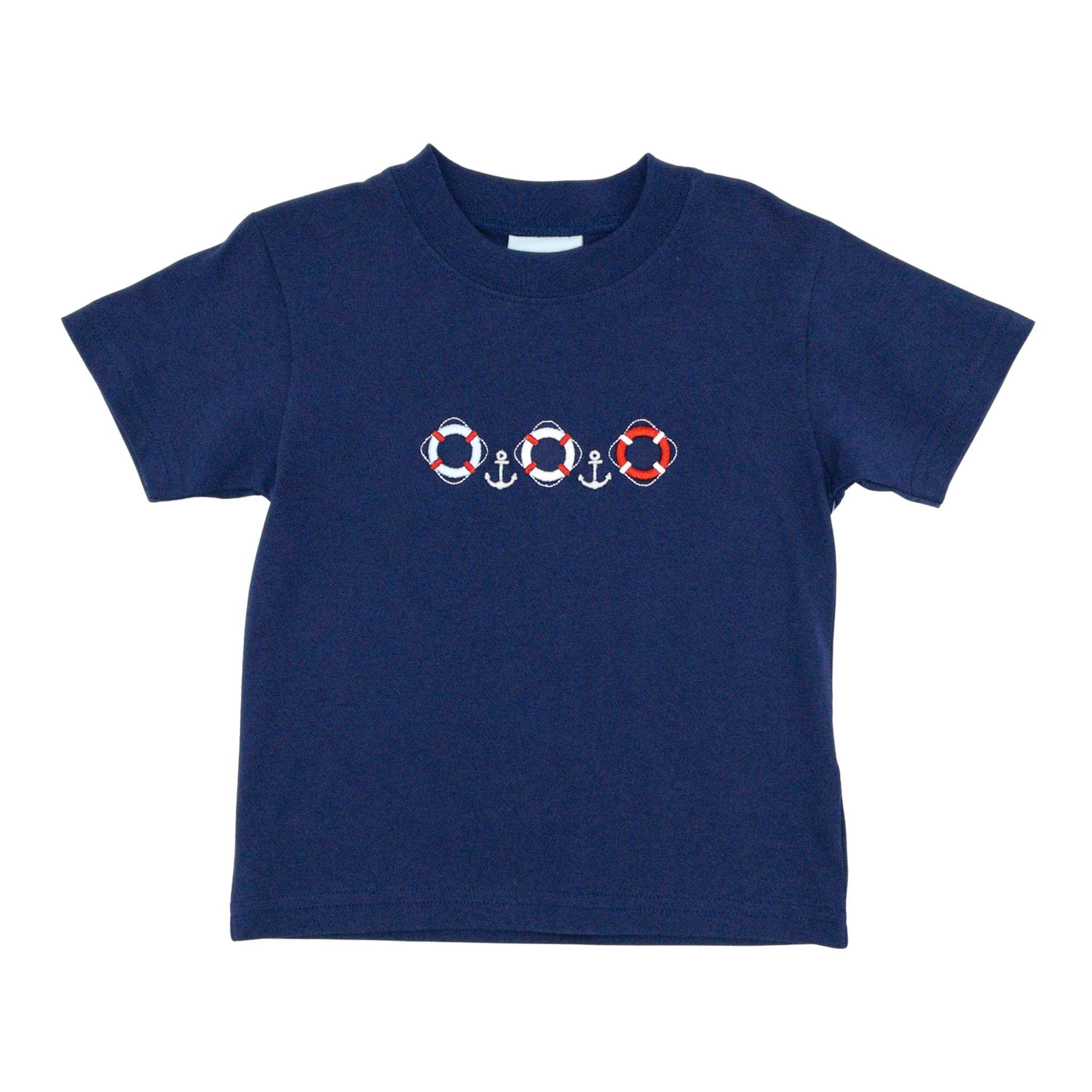 Set sail for summer style with this charming navy tee featuring playful nautical embroidery. Life preservers and anchors dance across the chest, bringing beachy vibes to every adventure. Whether he's building sandcastles or dreaming of seaside escapades, this tee captures that carefree coastal spirit in every stitch!