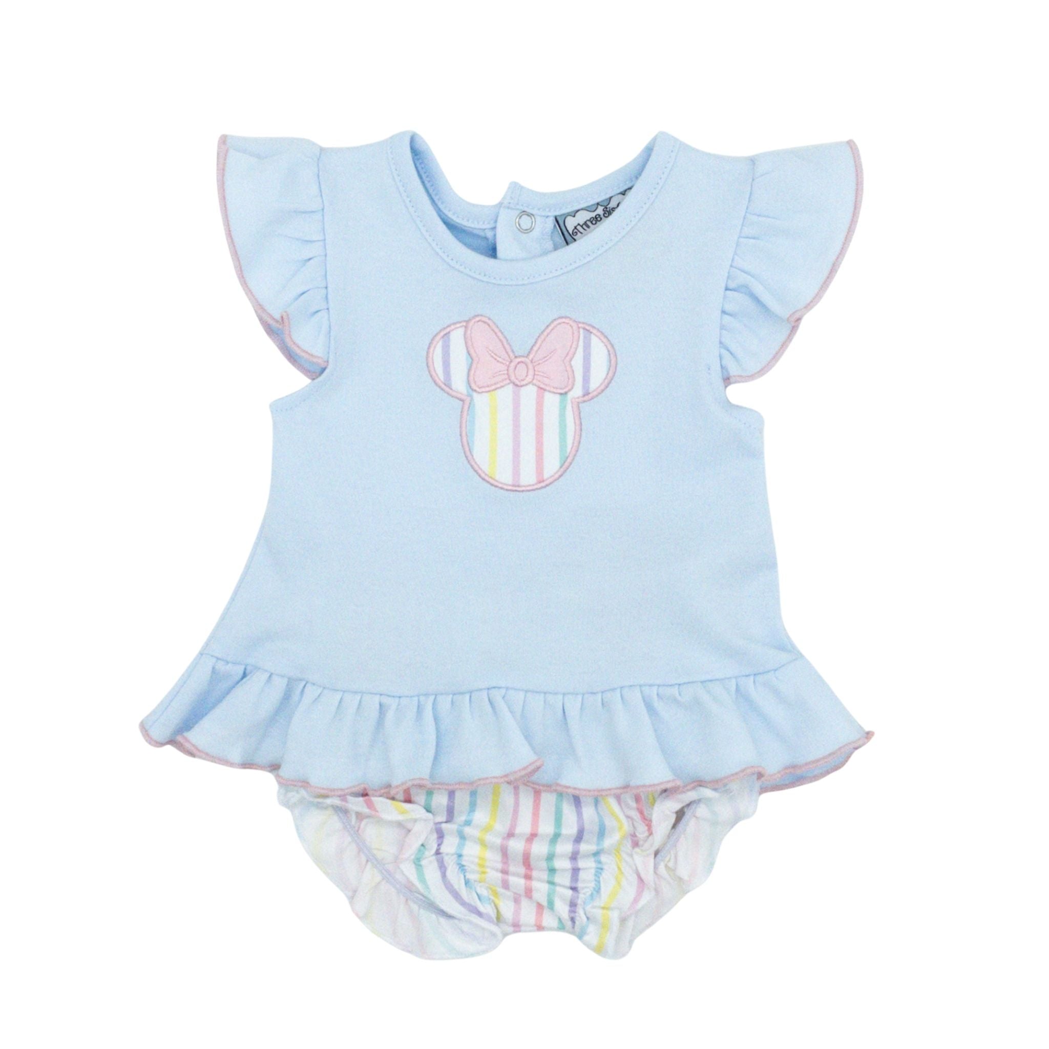 Let your little one shine in this delightful two-piece set designed for magical moments. The cozy blue knit top features flutter sleeves with charming pink trim, while the coordinating striped bloomers complete the look. A colorful Magical Mouse applique brings playful personality to the ensemble. Perfect for theme park trips or special occasions, this comfortable set blends style and imagination for little ones who love enchanted adventures.