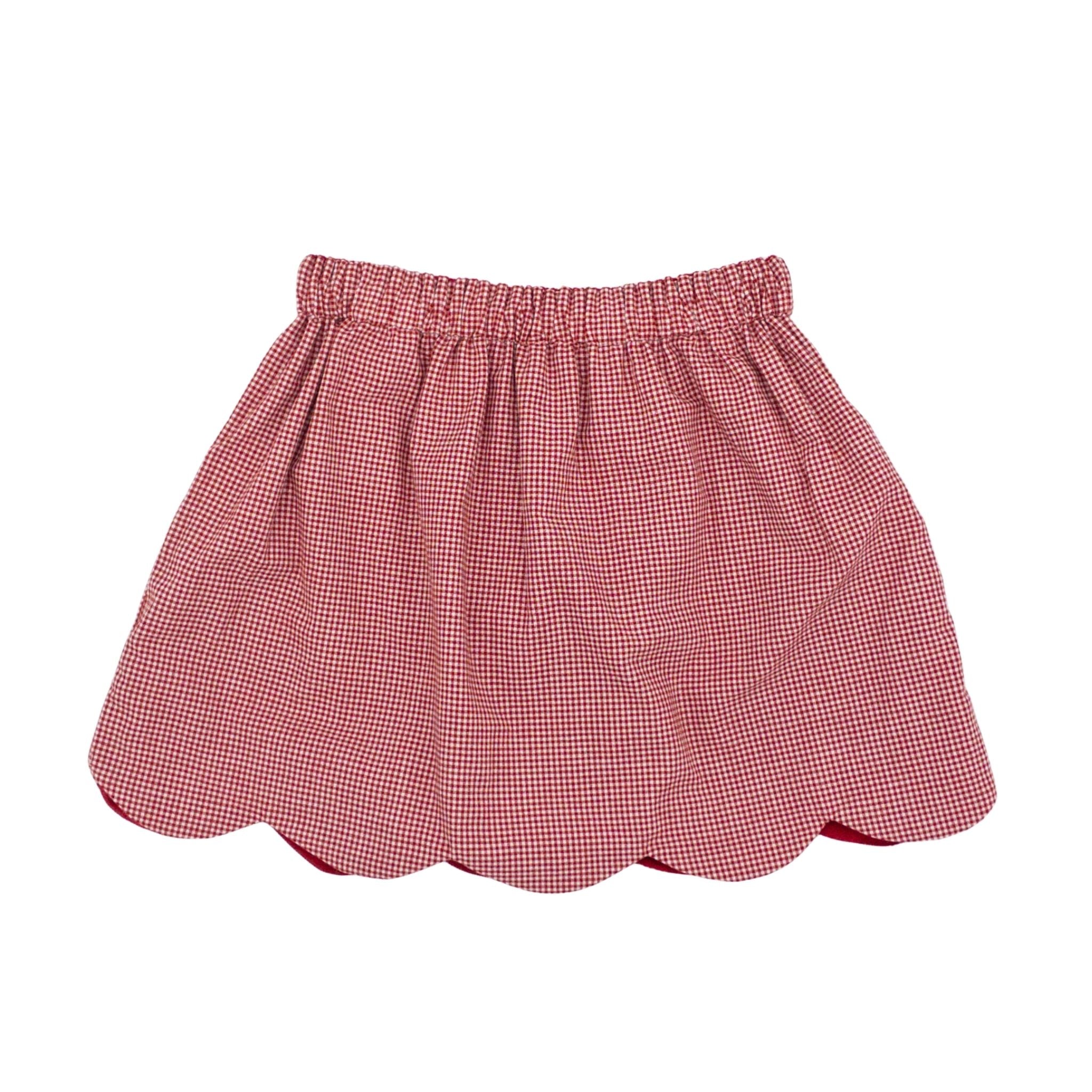 Introduce versatility and style to her wardrobe with the Zuccini Kids Reversible Kendall Skirt. This classic piece offers two charming looks in one, featuring soft corduroy on one side for a cozy feel and classic red gingham on the other for a sweet, preppy vibe. The reversible design, along with an elastic waistband, makes dressing quick and easy, while the pretty scalloped hem adds a delicate finishing touch to both sides. It's the perfect skirt for any occasion!