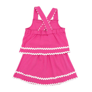 Scallop-collar Dress with Hand-embroidered Flowers - Pink