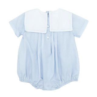 Boys Batiste Yoke Bubble with Train Shadow-Embroidery - Blue